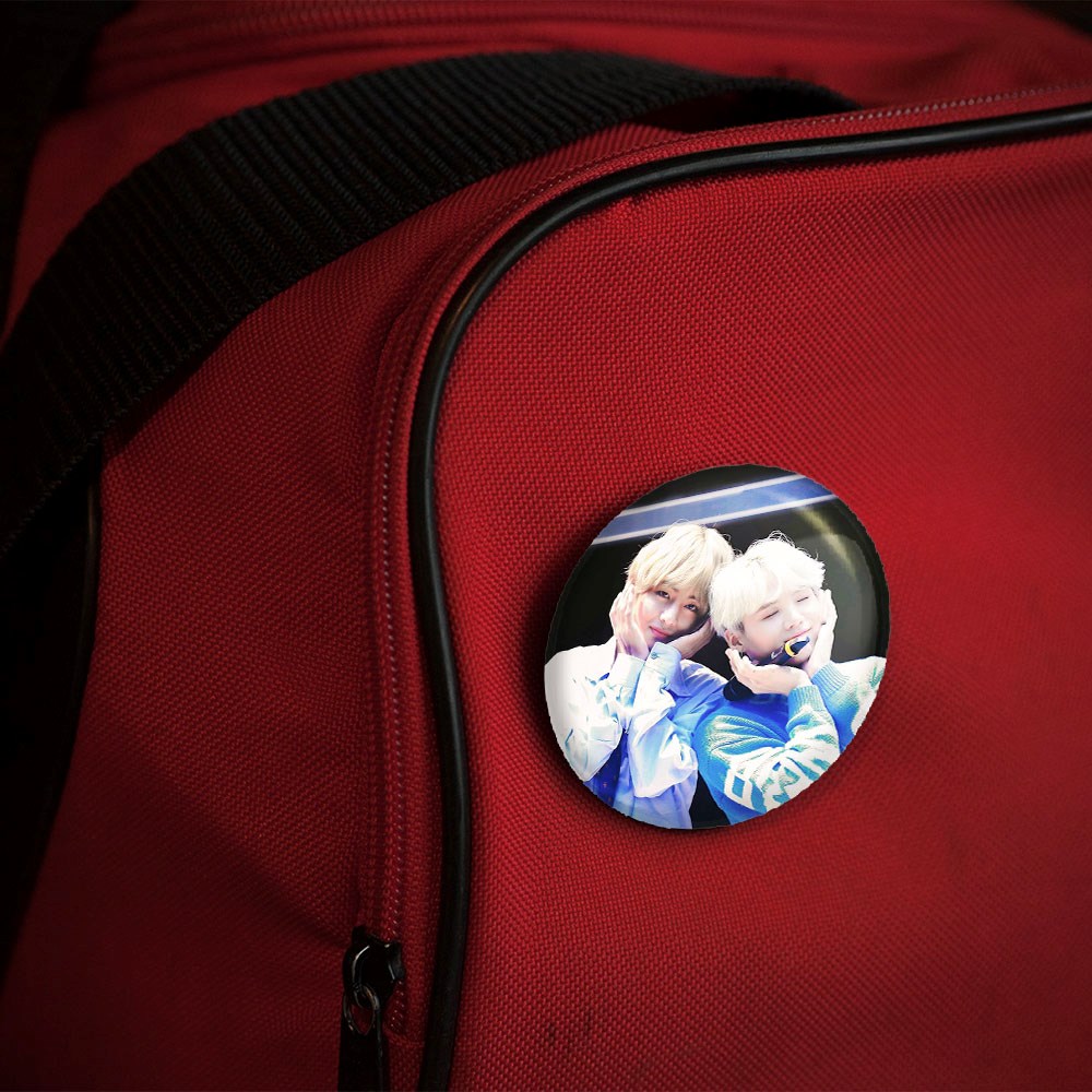 پیکسل 44 میلی متری گروه بی تی اس BTS خندالو با روکش سلفون حرارتی مات مخملی ضدخش و قطعه پشتی رنگی تولید شده است.پلاستیکی پشت پیکسل با سوزن یک تکه ثابت و بدون لغزش و جا به جایی، ایستایی بسیار بهتری نسبت به پشتی فلزی پیکسل دارند که این مهم در تولید این محصول نیز رعایت شده است.