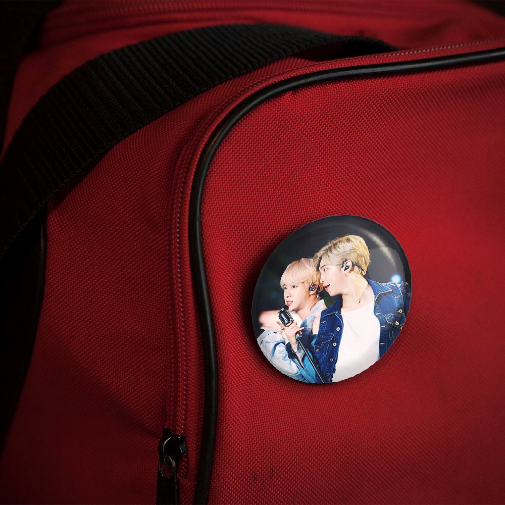 پیکسل 44 میلی متری گروه بی تی اس BTS خندالو با روکش سلفون حرارتی مات مخملی ضدخش و قطعه پشتی رنگی تولید شده است.پلاستیکی پشت پیکسل با سوزن یک تکه ثابت و بدون لغزش و جا به جایی، ایستایی بسیار بهتری نسبت به پشتی فلزی پیکسل دارند که این مهم در تولید این محصول نیز رعایت شده است.