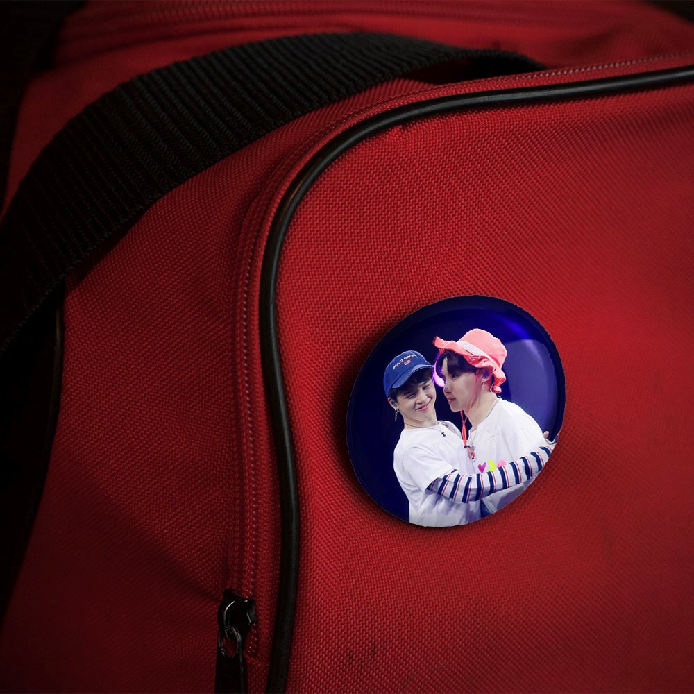 پیکسل 44 میلی متری گروه بی تی اس BTS خندالو با روکش سلفون حرارتی مات مخملی ضدخش و قطعه پشتی رنگی تولید شده است.پلاستیکی پشت پیکسل با سوزن یک تکه ثابت و بدون لغزش و جا به جایی، ایستایی بسیار بهتری نسبت به پشتی فلزی پیکسل دارند که این مهم در تولید این محصول نیز رعایت شده است.