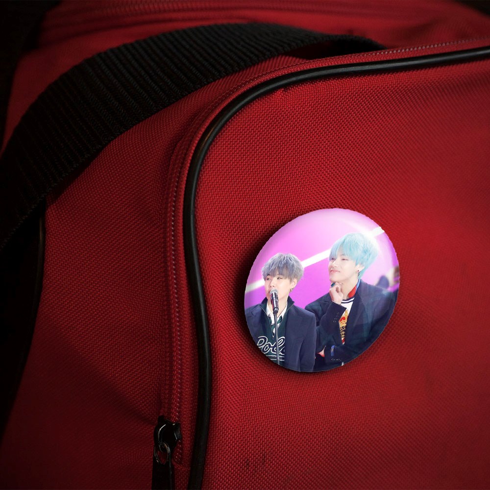 پیکسل 44 میلی متری گروه بی تی اس BTS خندالو با روکش سلفون حرارتی مات مخملی ضدخش و قطعه پشتی رنگی تولید شده است.پلاستیکی پشت پیکسل با سوزن یک تکه ثابت و بدون لغزش و جا به جایی، ایستایی بسیار بهتری نسبت به پشتی فلزی پیکسل دارند که این مهم در تولید این محصول نیز رعایت شده است.