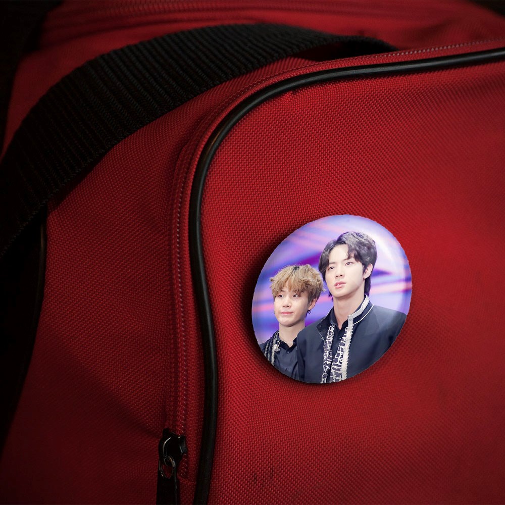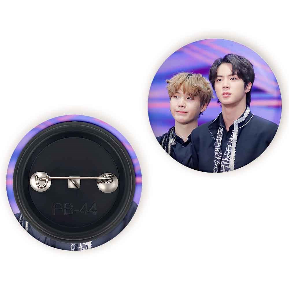 پیکسل 44 میلی متری گروه بی تی اس BTS خندالو با روکش سلفون حرارتی مات مخملی ضدخش و قطعه پشتی رنگی تولید شده است.پلاستیکی پشت پیکسل با سوزن یک تکه ثابت و بدون لغزش و جا به جایی، ایستایی بسیار بهتری نسبت به پشتی فلزی پیکسل دارند که این مهم در تولید این محصول نیز رعایت شده است.