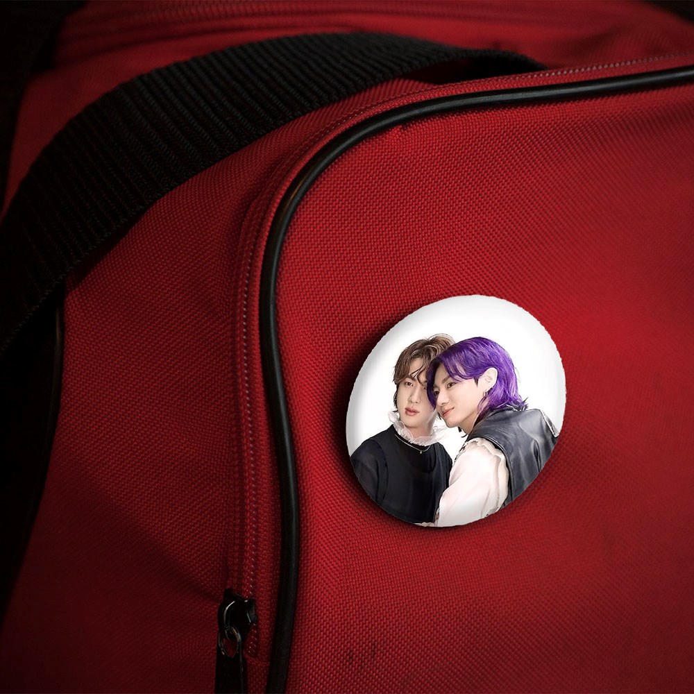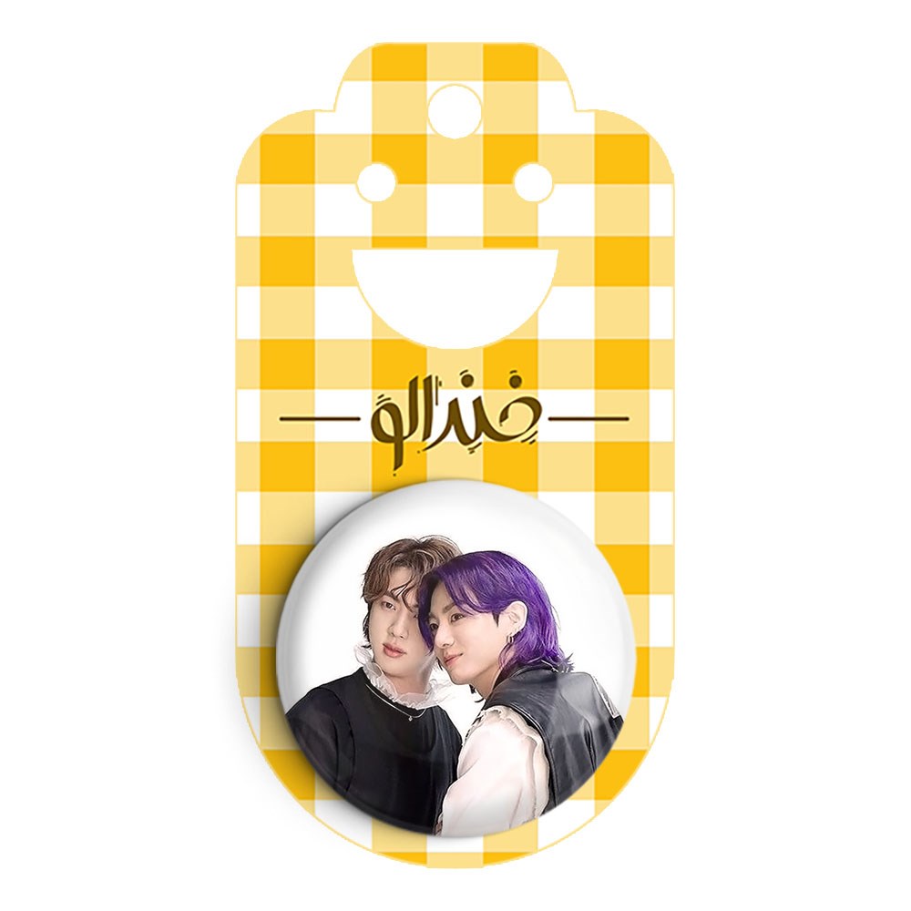 پیکسل 44 میلی متری گروه بی تی اس BTS خندالو با روکش سلفون حرارتی مات مخملی ضدخش و قطعه پشتی رنگی تولید شده است.پلاستیکی پشت پیکسل با سوزن یک تکه ثابت و بدون لغزش و جا به جایی، ایستایی بسیار بهتری نسبت به پشتی فلزی پیکسل دارند که این مهم در تولید این محصول نیز رعایت شده است.