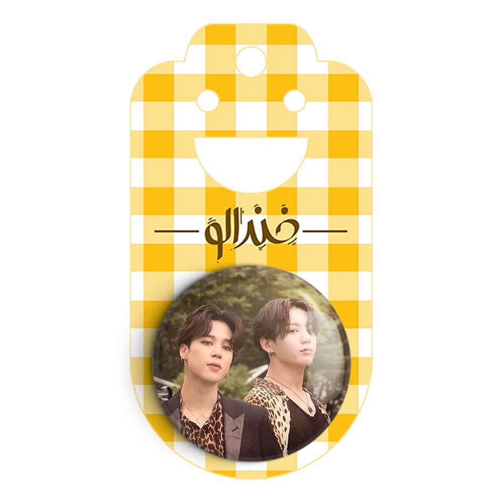 پیکسل 44 میلی متری گروه بی تی اس BTS خندالو با روکش سلفون حرارتی مات مخملی ضدخش و قطعه پشتی رنگی تولید شده است.پلاستیکی پشت پیکسل با سوزن یک تکه ثابت و بدون لغزش و جا به جایی، ایستایی بسیار بهتری نسبت به پشتی فلزی پیکسل دارند که این مهم در تولید این محصول نیز رعایت شده است.