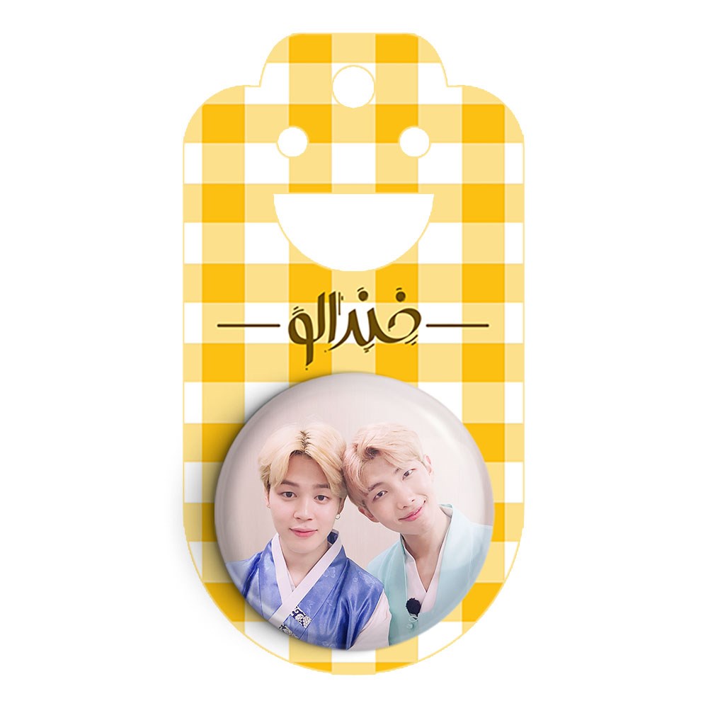 پیکسل 44 میلی متری گروه بی تی اس BTS خندالو با روکش سلفون حرارتی مات مخملی ضدخش و قطعه پشتی رنگی تولید شده است.پلاستیکی پشت پیکسل با سوزن یک تکه ثابت و بدون لغزش و جا به جایی، ایستایی بسیار بهتری نسبت به پشتی فلزی پیکسل دارند که این مهم در تولید این محصول نیز رعایت شده است.
