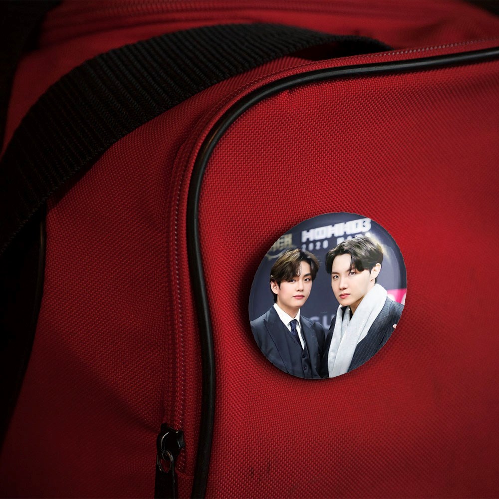 پیکسل 44 میلی متری گروه بی تی اس BTS خندالو با روکش سلفون حرارتی مات مخملی ضدخش و قطعه پشتی رنگی تولید شده است.پلاستیکی پشت پیکسل با سوزن یک تکه ثابت و بدون لغزش و جا به جایی، ایستایی بسیار بهتری نسبت به پشتی فلزی پیکسل دارند که این مهم در تولید این محصول نیز رعایت شده است.
