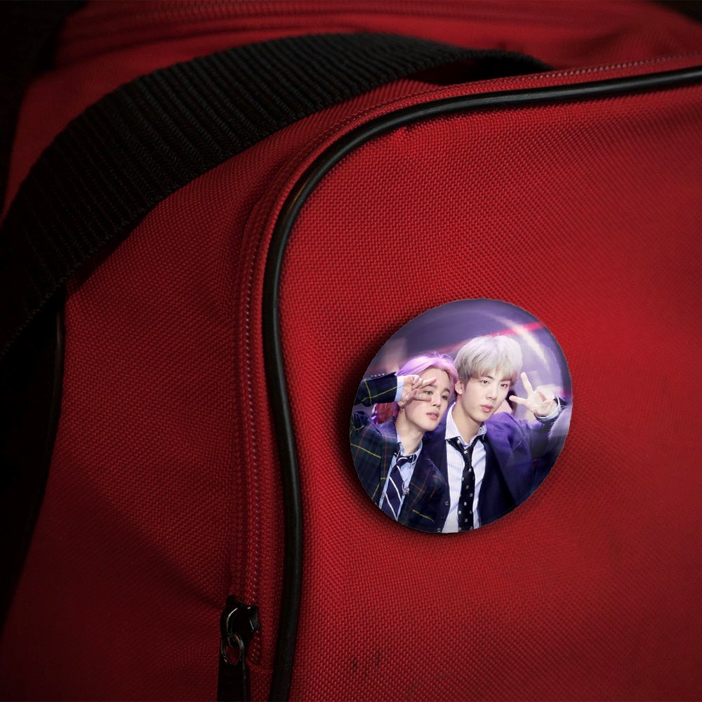 پیکسل 44 میلی متری گروه بی تی اس BTS خندالو با روکش سلفون حرارتی مات مخملی ضدخش و قطعه پشتی رنگی تولید شده است.پلاستیکی پشت پیکسل با سوزن یک تکه ثابت و بدون لغزش و جا به جایی، ایستایی بسیار بهتری نسبت به پشتی فلزی پیکسل دارند که این مهم در تولید این محصول نیز رعایت شده است.