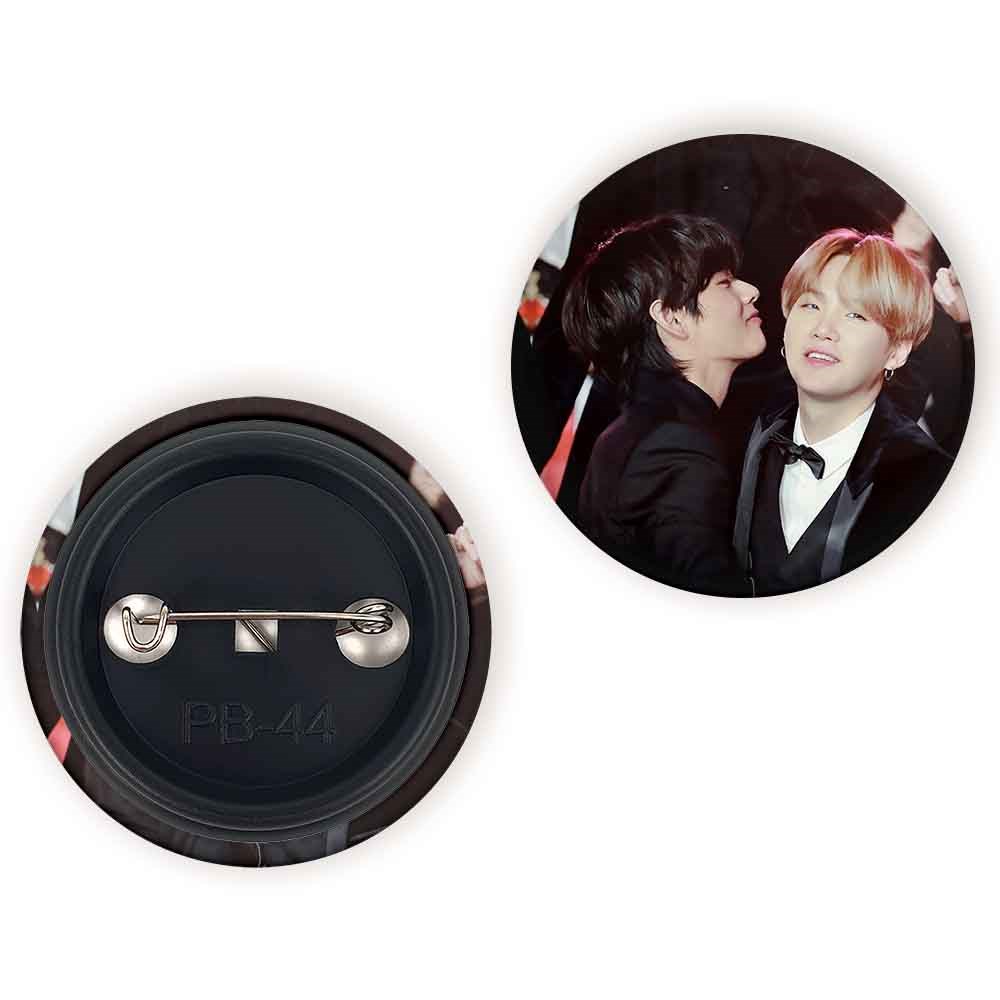 پیکسل 44 میلی متری گروه بی تی اس BTS خندالو با روکش سلفون حرارتی مات مخملی ضدخش و قطعه پشتی رنگی تولید شده است.پلاستیکی پشت پیکسل با سوزن یک تکه ثابت و بدون لغزش و جا به جایی، ایستایی بسیار بهتری نسبت به پشتی فلزی پیکسل دارند که این مهم در تولید این محصول نیز رعایت شده است.