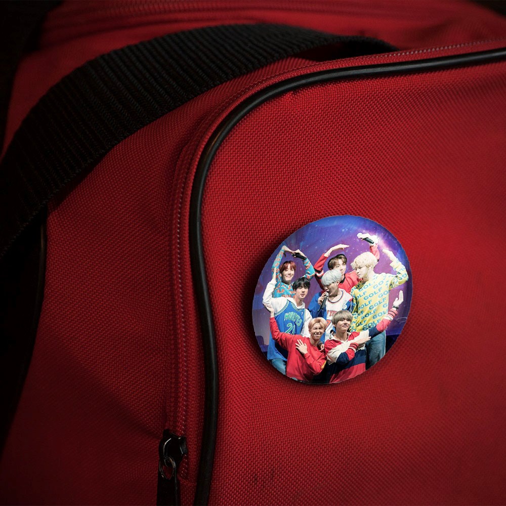 پیکسل 44 میلی متری گروه بی تی اس BTS خندالو با روکش سلفون حرارتی مات مخملی ضدخش و قطعه پشتی رنگی تولید شده است.پلاستیکی پشت پیکسل با سوزن یک تکه ثابت و بدون لغزش و جا به جایی، ایستایی بسیار بهتری نسبت به پشتی فلزی پیکسل دارند که این مهم در تولید این محصول نیز رعایت شده است.