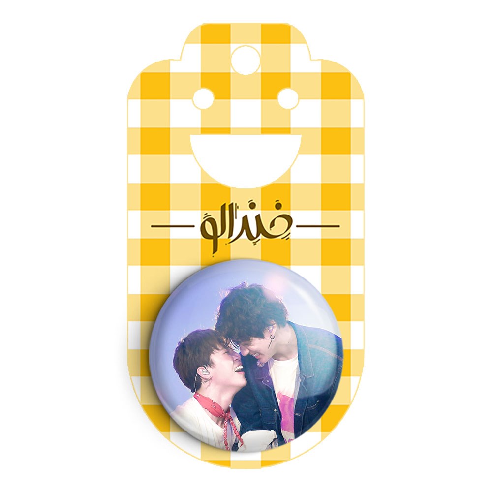 پیکسل 44 میلی متری گروه بی تی اس BTS خندالو با روکش سلفون حرارتی مات مخملی ضدخش و قطعه پشتی رنگی تولید شده است.پلاستیکی پشت پیکسل با سوزن یک تکه ثابت و بدون لغزش و جا به جایی، ایستایی بسیار بهتری نسبت به پشتی فلزی پیکسل دارند که این مهم در تولید این محصول نیز رعایت شده است.