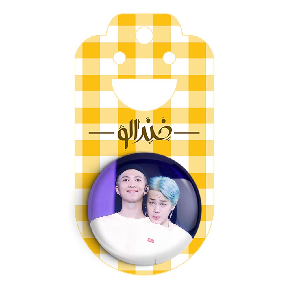 پیکسل 44 میلی متری گروه بی تی اس BTS خندالو با روکش سلفون حرارتی مات مخملی ضدخش و قطعه پشتی رنگی تولید شده است.پلاستیکی پشت پیکسل با سوزن یک تکه ثابت و بدون لغزش و جا به جایی، ایستایی بسیار بهتری نسبت به پشتی فلزی پیکسل دارند که این مهم در تولید این محصول نیز رعایت شده است.