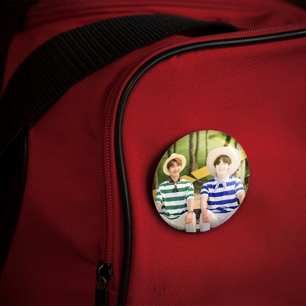 پیکسل 44 میلی متری گروه بی تی اس BTS خندالو با روکش سلفون حرارتی مات مخملی ضدخش و قطعه پشتی رنگی تولید شده است.پلاستیکی پشت پیکسل با سوزن یک تکه ثابت و بدون لغزش و جا به جایی، ایستایی بسیار بهتری نسبت به پشتی فلزی پیکسل دارند که این مهم در تولید این محصول نیز رعایت شده است.