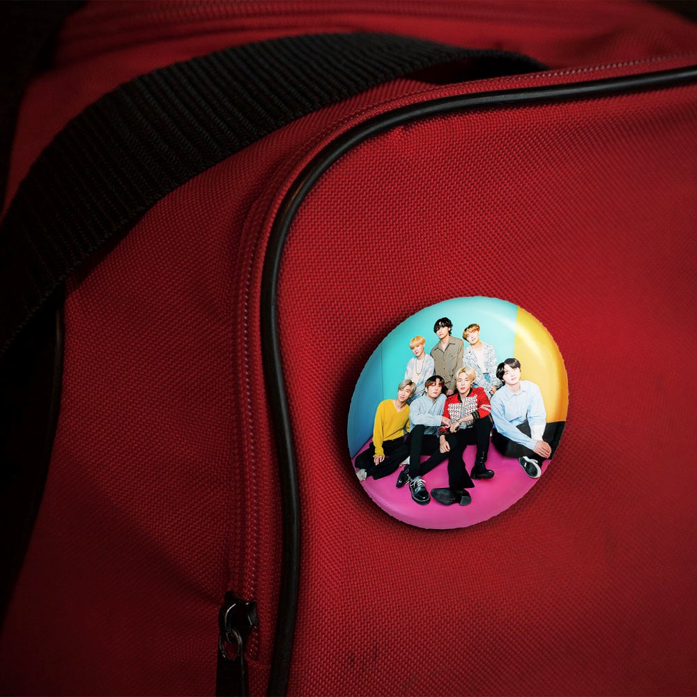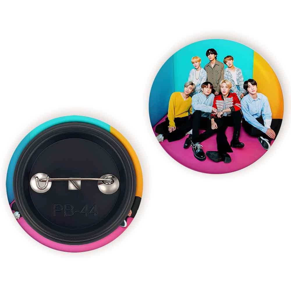 پیکسل 44 میلی متری گروه بی تی اس BTS خندالو با روکش سلفون حرارتی مات مخملی ضدخش و قطعه پشتی رنگی تولید شده است.پلاستیکی پشت پیکسل با سوزن یک تکه ثابت و بدون لغزش و جا به جایی، ایستایی بسیار بهتری نسبت به پشتی فلزی پیکسل دارند که این مهم در تولید این محصول نیز رعایت شده است.
