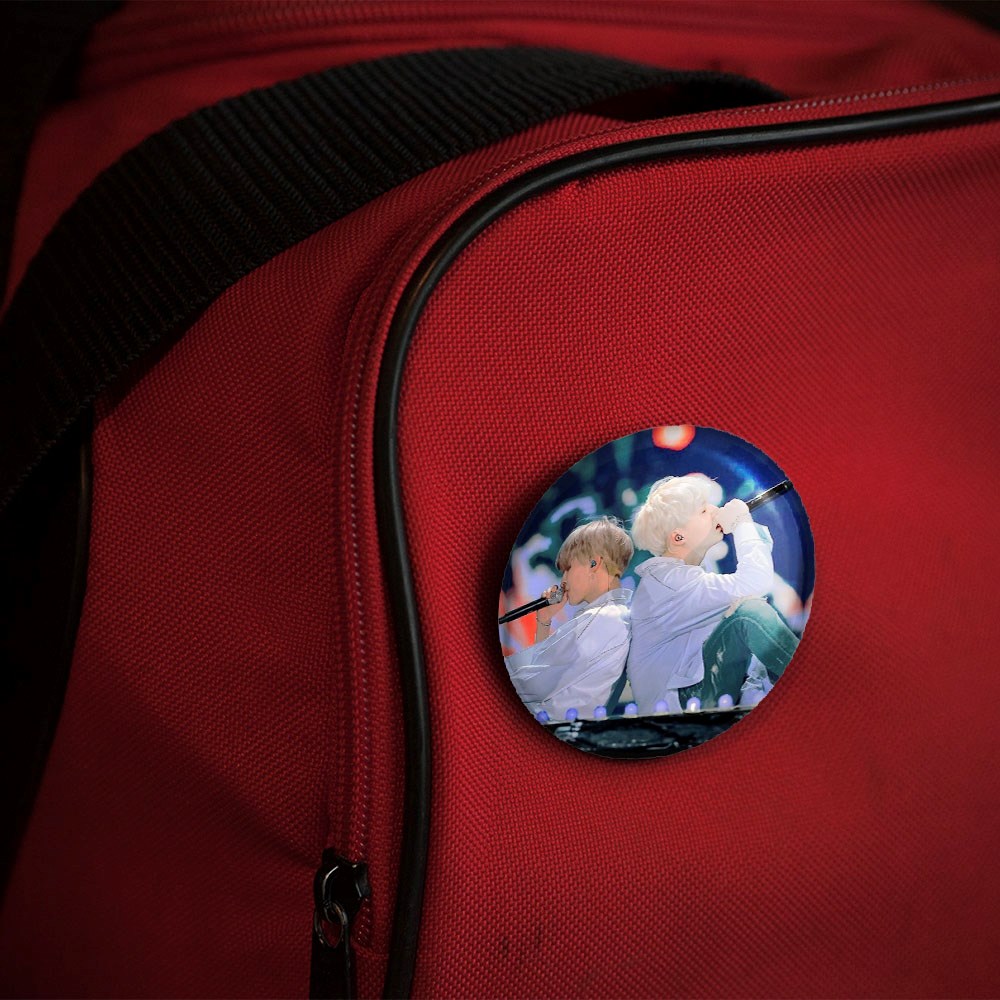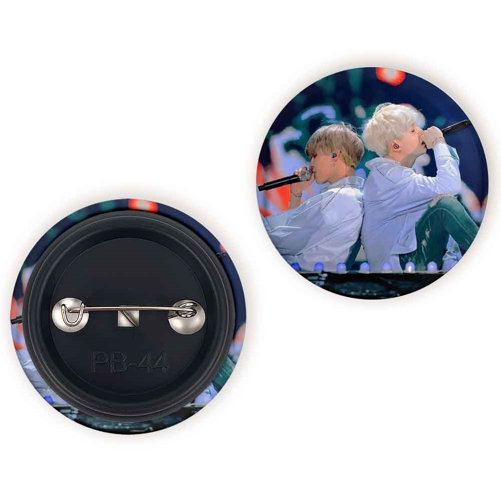 پیکسل 44 میلی متری گروه بی تی اس BTS خندالو با روکش سلفون حرارتی مات مخملی ضدخش و قطعه پشتی رنگی تولید شده است.پلاستیکی پشت پیکسل با سوزن یک تکه ثابت و بدون لغزش و جا به جایی، ایستایی بسیار بهتری نسبت به پشتی فلزی پیکسل دارند که این مهم در تولید این محصول نیز رعایت شده است.