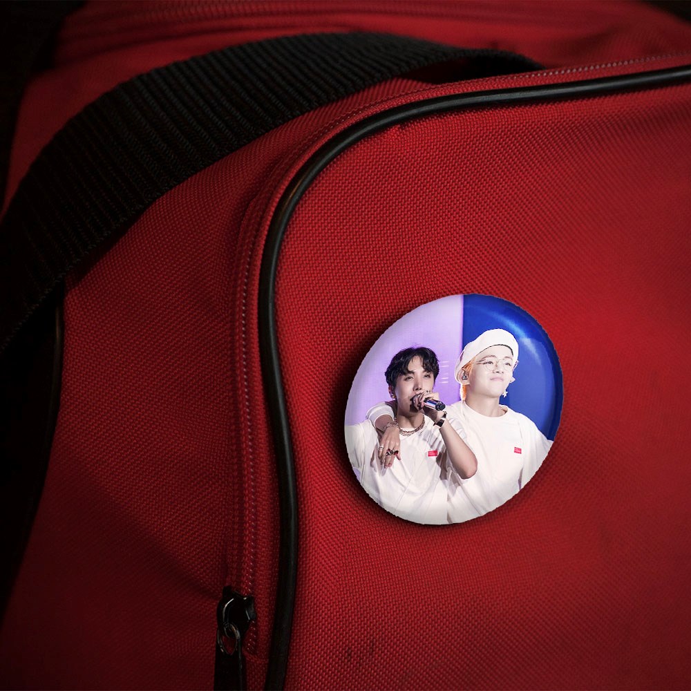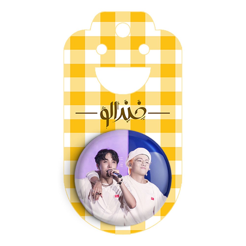 پیکسل 44 میلی متری گروه بی تی اس BTS خندالو با روکش سلفون حرارتی مات مخملی ضدخش و قطعه پشتی رنگی تولید شده است.پلاستیکی پشت پیکسل با سوزن یک تکه ثابت و بدون لغزش و جا به جایی، ایستایی بسیار بهتری نسبت به پشتی فلزی پیکسل دارند که این مهم در تولید این محصول نیز رعایت شده است.