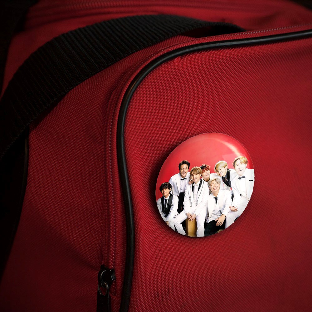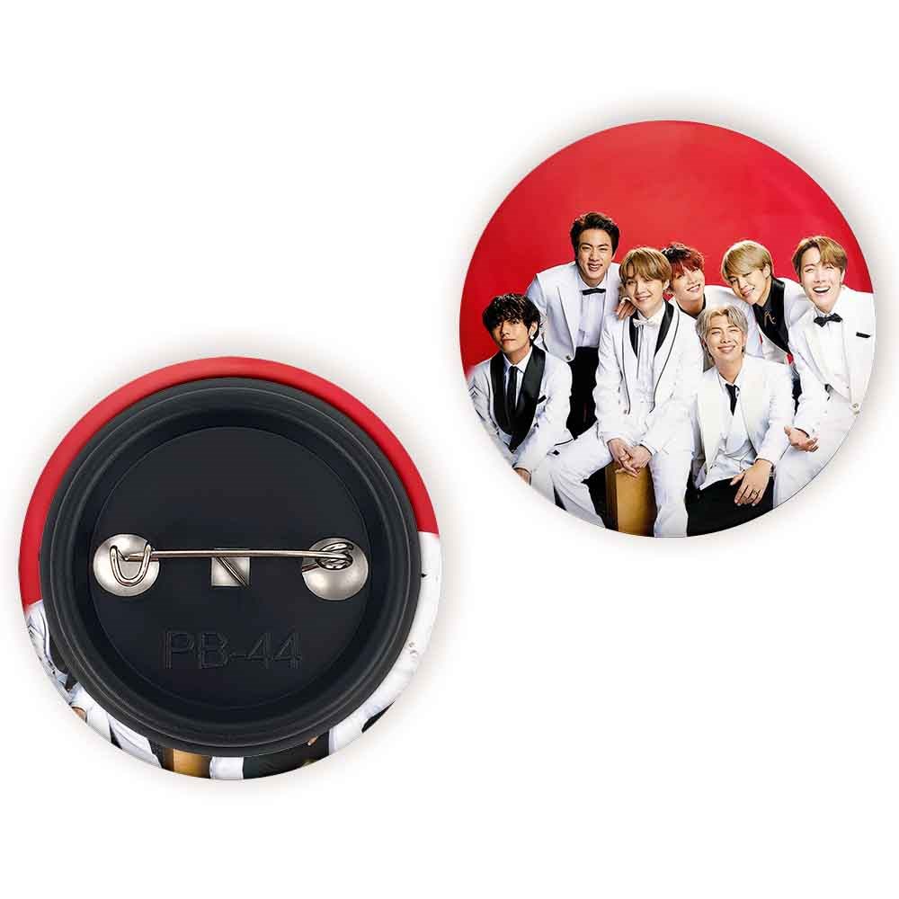 پیکسل 44 میلی متری گروه بی تی اس BTS خندالو با روکش سلفون حرارتی مات مخملی ضدخش و قطعه پشتی رنگی تولید شده است.پلاستیکی پشت پیکسل با سوزن یک تکه ثابت و بدون لغزش و جا به جایی، ایستایی بسیار بهتری نسبت به پشتی فلزی پیکسل دارند که این مهم در تولید این محصول نیز رعایت شده است.
