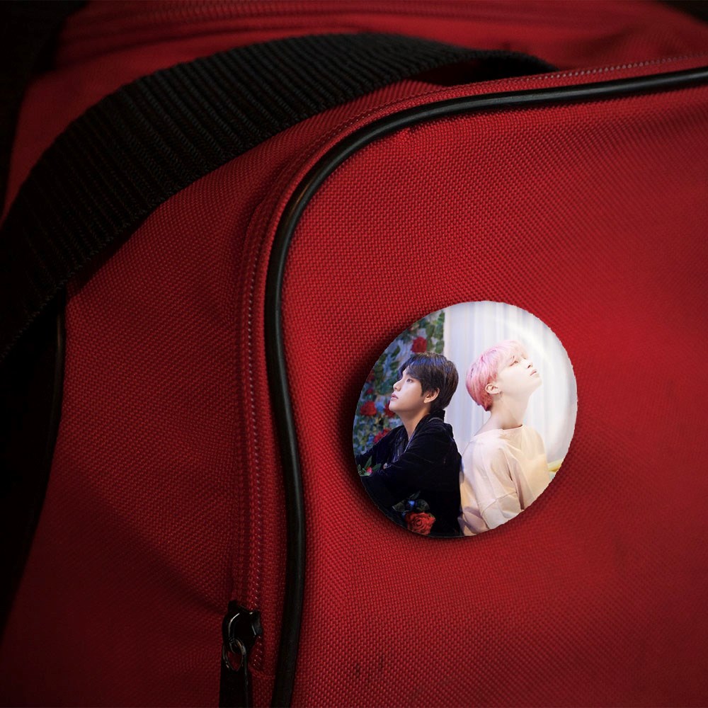 پیکسل 44 میلی متری گروه بی تی اس BTS خندالو با روکش سلفون حرارتی مات مخملی ضدخش و قطعه پشتی رنگی تولید شده است.پلاستیکی پشت پیکسل با سوزن یک تکه ثابت و بدون لغزش و جا به جایی، ایستایی بسیار بهتری نسبت به پشتی فلزی پیکسل دارند که این مهم در تولید این محصول نیز رعایت شده است.