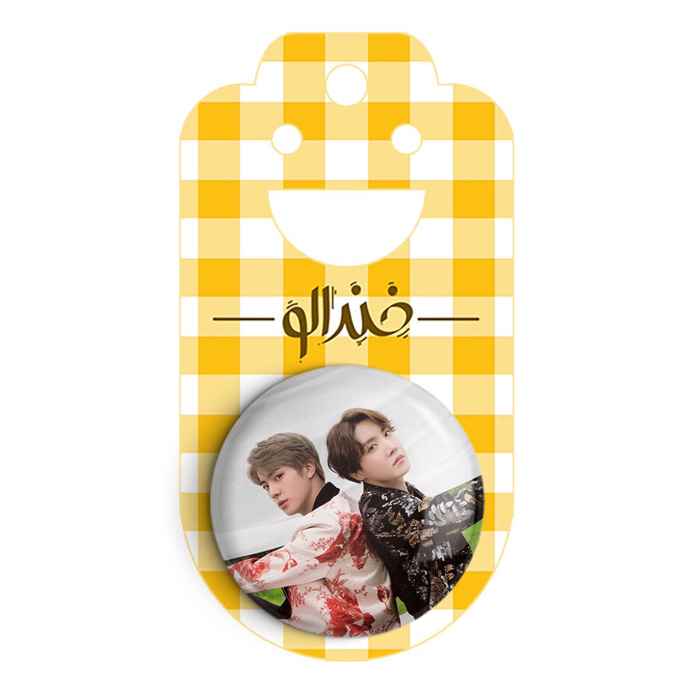 پیکسل 44 میلی متری گروه بی تی اس BTS خندالو با روکش سلفون حرارتی مات مخملی ضدخش و قطعه پشتی رنگی تولید شده است.پلاستیکی پشت پیکسل با سوزن یک تکه ثابت و بدون لغزش و جا به جایی، ایستایی بسیار بهتری نسبت به پشتی فلزی پیکسل دارند که این مهم در تولید این محصول نیز رعایت شده است.