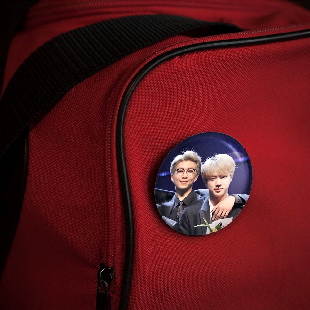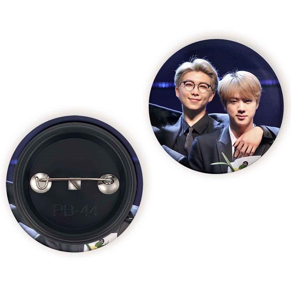 پیکسل 44 میلی متری گروه بی تی اس BTS خندالو با روکش سلفون حرارتی مات مخملی ضدخش و قطعه پشتی رنگی تولید شده است.پلاستیکی پشت پیکسل با سوزن یک تکه ثابت و بدون لغزش و جا به جایی، ایستایی بسیار بهتری نسبت به پشتی فلزی پیکسل دارند که این مهم در تولید این محصول نیز رعایت شده است.