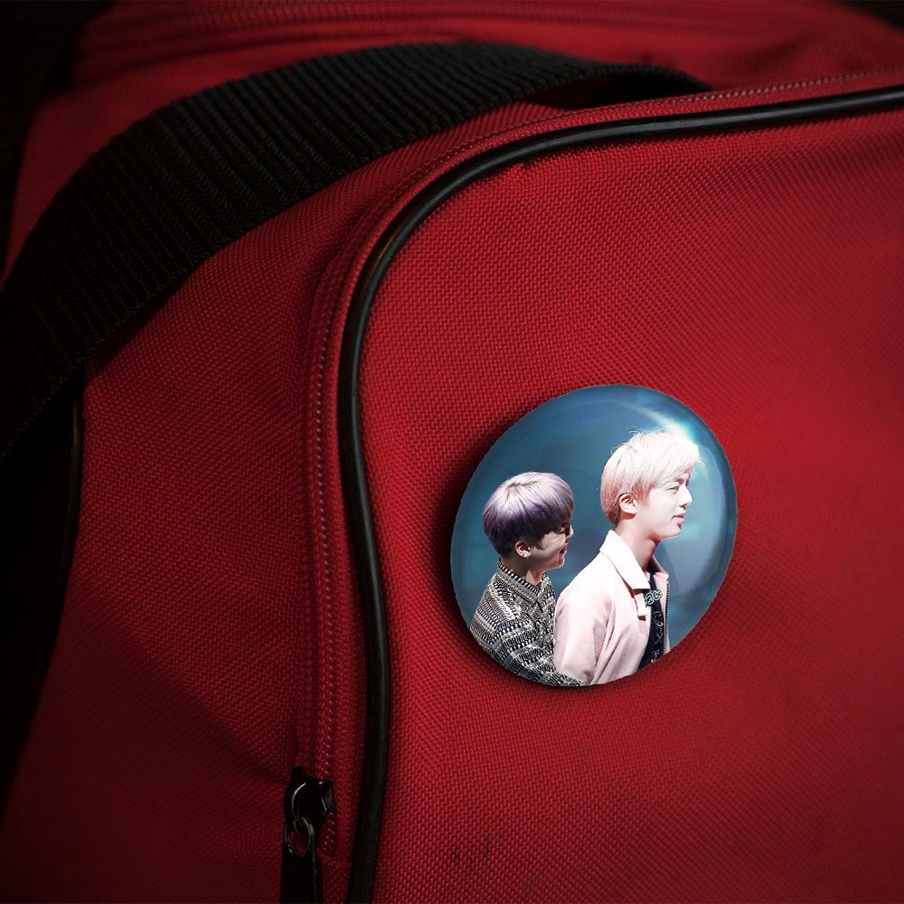 پیکسل 44 میلی متری گروه بی تی اس BTS خندالو با روکش سلفون حرارتی مات مخملی ضدخش و قطعه پشتی رنگی تولید شده است.پلاستیکی پشت پیکسل با سوزن یک تکه ثابت و بدون لغزش و جا به جایی، ایستایی بسیار بهتری نسبت به پشتی فلزی پیکسل دارند که این مهم در تولید این محصول نیز رعایت شده است.