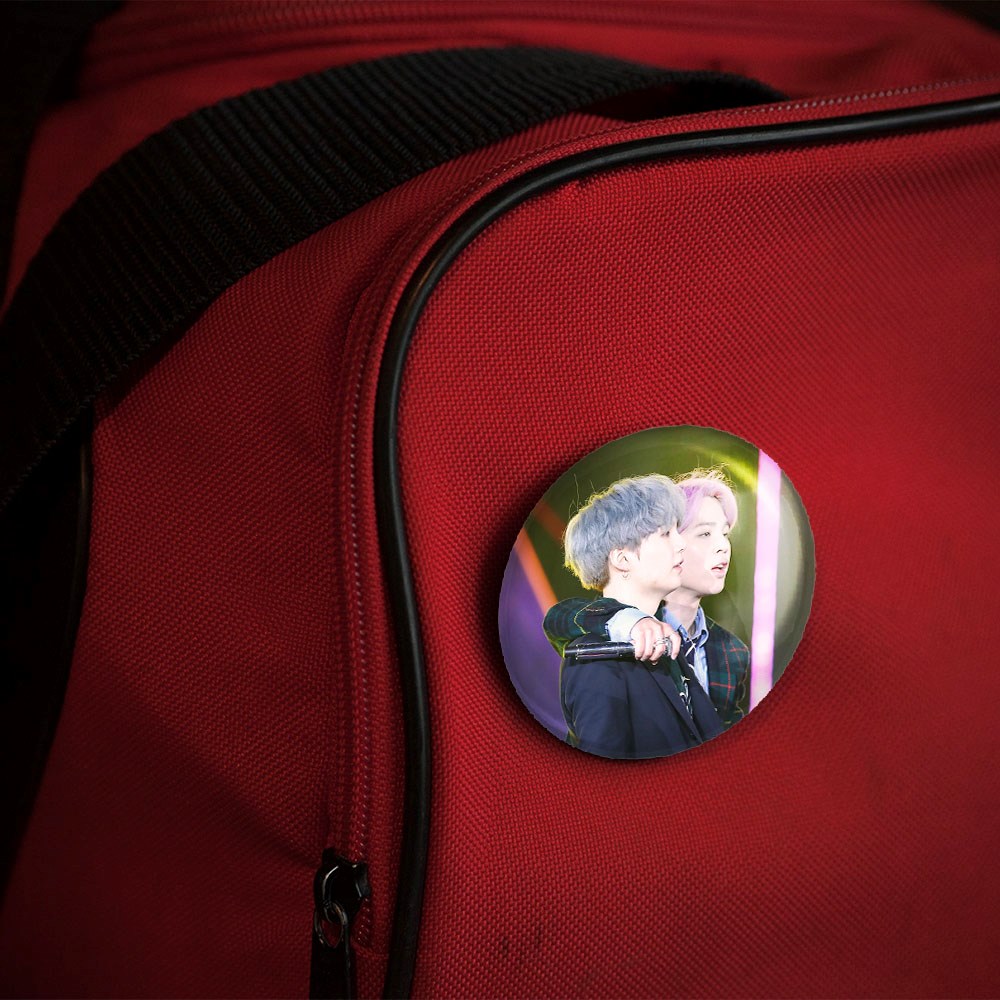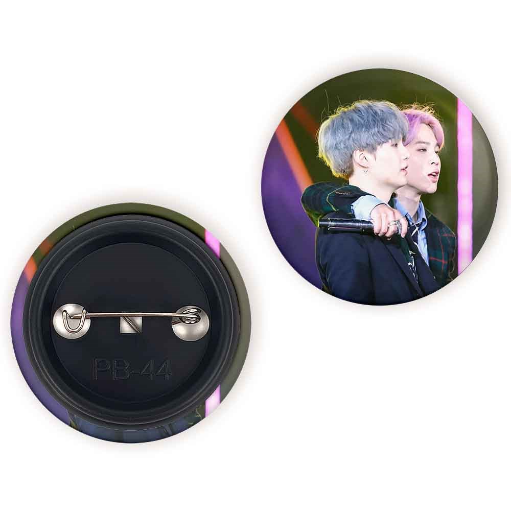 پیکسل 44 میلی متری گروه بی تی اس BTS خندالو با روکش سلفون حرارتی مات مخملی ضدخش و قطعه پشتی رنگی تولید شده است.پلاستیکی پشت پیکسل با سوزن یک تکه ثابت و بدون لغزش و جا به جایی، ایستایی بسیار بهتری نسبت به پشتی فلزی پیکسل دارند که این مهم در تولید این محصول نیز رعایت شده است.