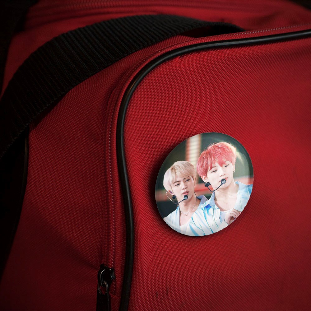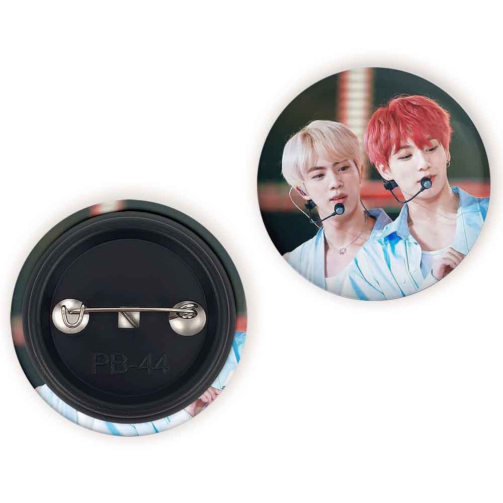 پیکسل 44 میلی متری گروه بی تی اس BTS خندالو با روکش سلفون حرارتی مات مخملی ضدخش و قطعه پشتی رنگی تولید شده است.پلاستیکی پشت پیکسل با سوزن یک تکه ثابت و بدون لغزش و جا به جایی، ایستایی بسیار بهتری نسبت به پشتی فلزی پیکسل دارند که این مهم در تولید این محصول نیز رعایت شده است.