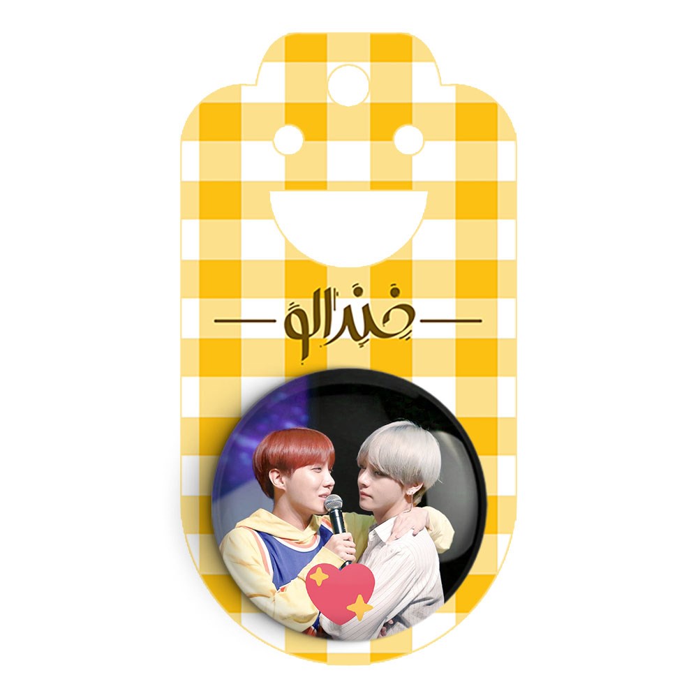 پیکسل 44 میلی متری گروه بی تی اس BTS خندالو با روکش سلفون حرارتی مات مخملی ضدخش و قطعه پشتی رنگی تولید شده است.پلاستیکی پشت پیکسل با سوزن یک تکه ثابت و بدون لغزش و جا به جایی، ایستایی بسیار بهتری نسبت به پشتی فلزی پیکسل دارند که این مهم در تولید این محصول نیز رعایت شده است.