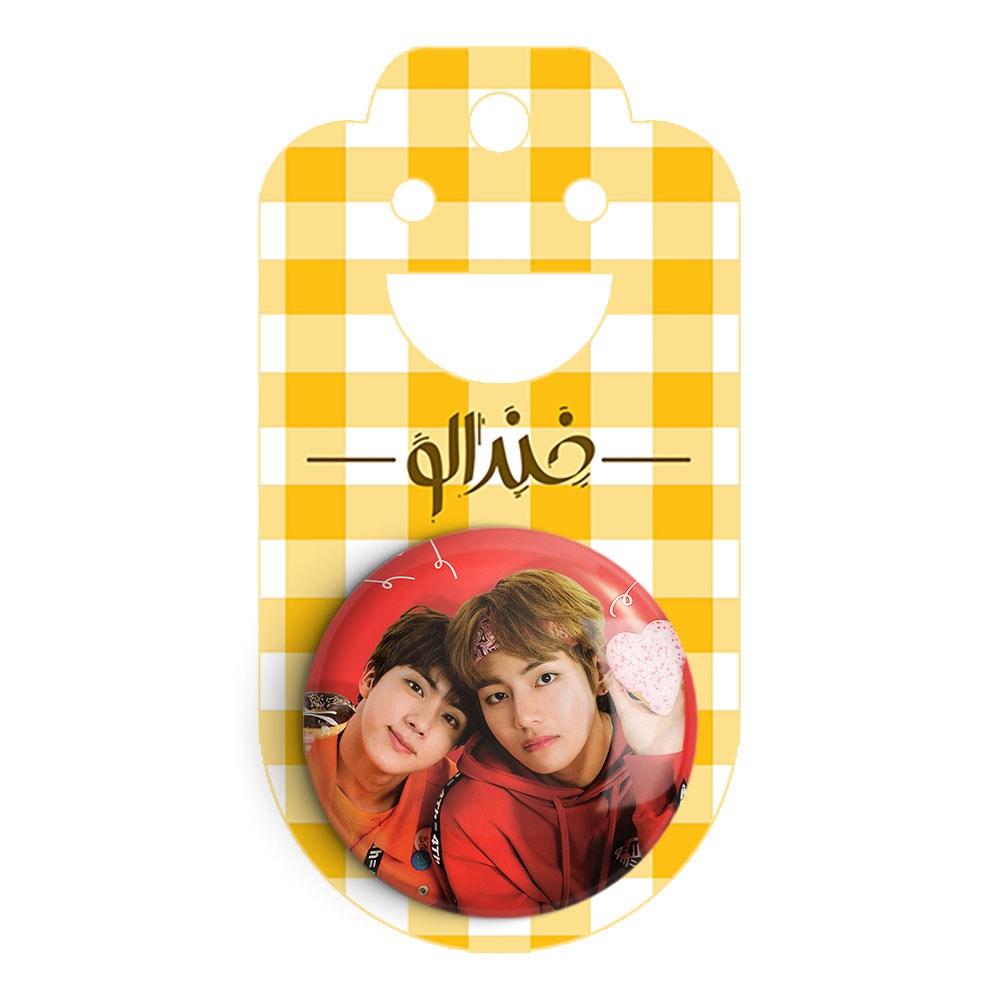 پیکسل 44 میلی متری گروه بی تی اس BTS خندالو با روکش سلفون حرارتی مات مخملی ضدخش و قطعه پشتی رنگی تولید شده است.پلاستیکی پشت پیکسل با سوزن یک تکه ثابت و بدون لغزش و جا به جایی، ایستایی بسیار بهتری نسبت به پشتی فلزی پیکسل دارند که این مهم در تولید این محصول نیز رعایت شده است.
