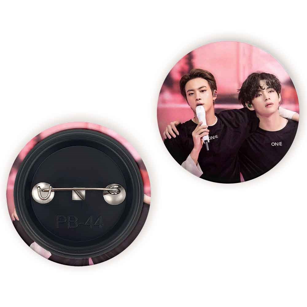 پیکسل 44 میلی متری گروه بی تی اس BTS خندالو با روکش سلفون حرارتی مات مخملی ضدخش و قطعه پشتی رنگی تولید شده است.پلاستیکی پشت پیکسل با سوزن یک تکه ثابت و بدون لغزش و جا به جایی، ایستایی بسیار بهتری نسبت به پشتی فلزی پیکسل دارند که این مهم در تولید این محصول نیز رعایت شده است.