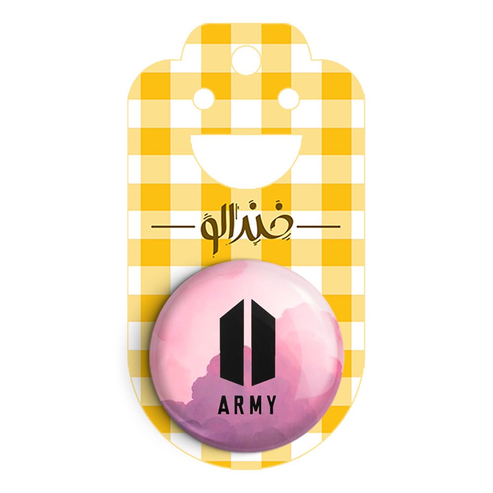 پیکسل 44 میلی متری گروه بی تی اس BTS خندالو با روکش سلفون حرارتی مات مخملی ضدخش و قطعه پشتی رنگی تولید شده است.پلاستیکی پشت پیکسل با سوزن یک تکه ثابت و بدون لغزش و جا به جایی، ایستایی بسیار بهتری نسبت به پشتی فلزی پیکسل دارند که این مهم در تولید این محصول نیز رعایت شده است.