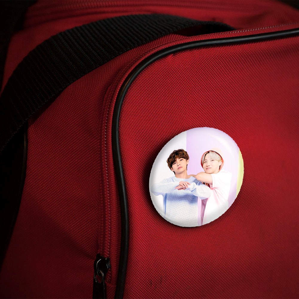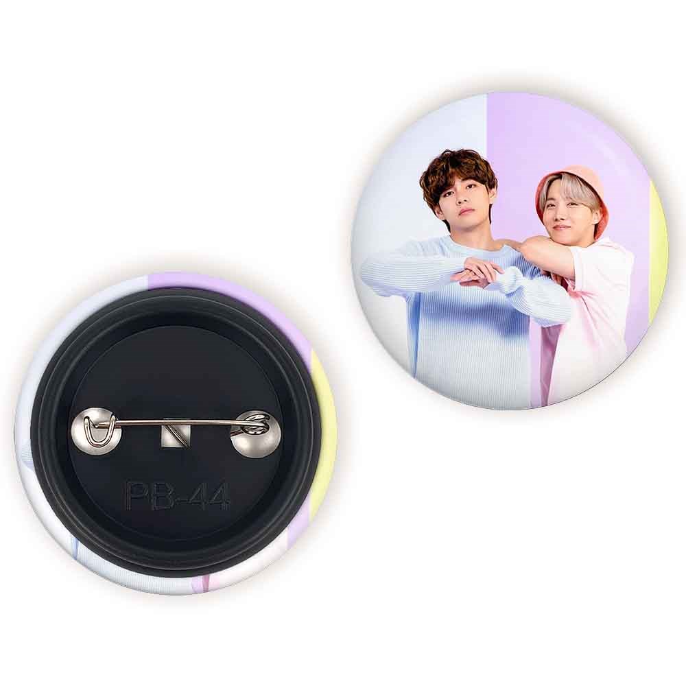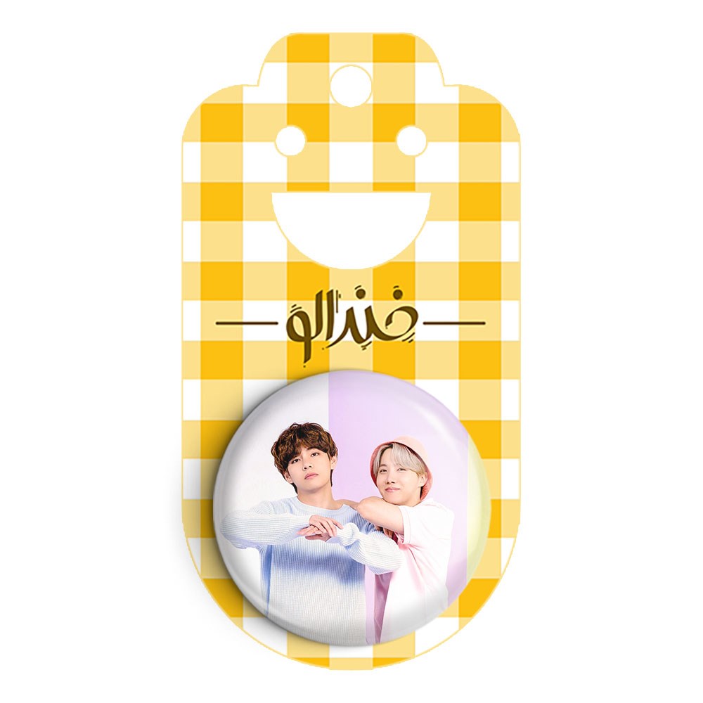 پیکسل 44 میلی متری گروه بی تی اس BTS خندالو با روکش سلفون حرارتی مات مخملی ضدخش و قطعه پشتی رنگی تولید شده است.پلاستیکی پشت پیکسل با سوزن یک تکه ثابت و بدون لغزش و جا به جایی، ایستایی بسیار بهتری نسبت به پشتی فلزی پیکسل دارند که این مهم در تولید این محصول نیز رعایت شده است.