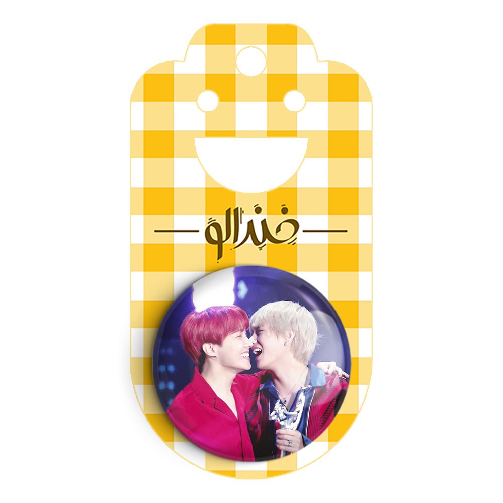 پیکسل 44 میلی متری گروه بی تی اس BTS خندالو با روکش سلفون حرارتی مات مخملی ضدخش و قطعه پشتی رنگی تولید شده است.پلاستیکی پشت پیکسل با سوزن یک تکه ثابت و بدون لغزش و جا به جایی، ایستایی بسیار بهتری نسبت به پشتی فلزی پیکسل دارند که این مهم در تولید این محصول نیز رعایت شده است.