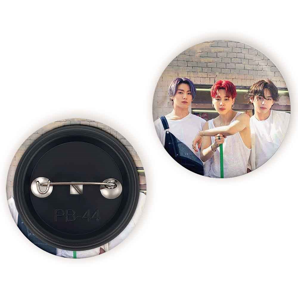 پیکسل 44 میلی متری گروه بی تی اس BTS خندالو با روکش سلفون حرارتی مات مخملی ضدخش و قطعه پشتی رنگی تولید شده است.پلاستیکی پشت پیکسل با سوزن یک تکه ثابت و بدون لغزش و جا به جایی، ایستایی بسیار بهتری نسبت به پشتی فلزی پیکسل دارند که این مهم در تولید این محصول نیز رعایت شده است.
