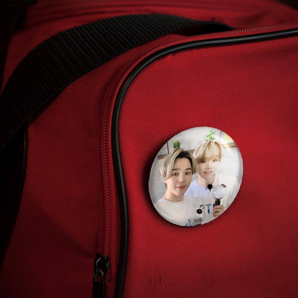 پیکسل 44 میلی متری گروه بی تی اس BTS خندالو با روکش سلفون حرارتی مات مخملی ضدخش و قطعه پشتی رنگی تولید شده است.پلاستیکی پشت پیکسل با سوزن یک تکه ثابت و بدون لغزش و جا به جایی، ایستایی بسیار بهتری نسبت به پشتی فلزی پیکسل دارند که این مهم در تولید این محصول نیز رعایت شده است.