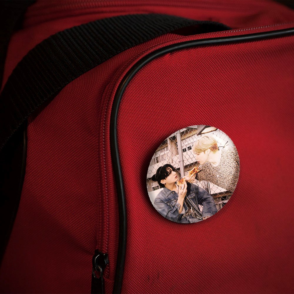 پیکسل 44 میلی متری گروه بی تی اس BTS خندالو با روکش سلفون حرارتی مات مخملی ضدخش و قطعه پشتی رنگی تولید شده است.پلاستیکی پشت پیکسل با سوزن یک تکه ثابت و بدون لغزش و جا به جایی، ایستایی بسیار بهتری نسبت به پشتی فلزی پیکسل دارند که این مهم در تولید این محصول نیز رعایت شده است.