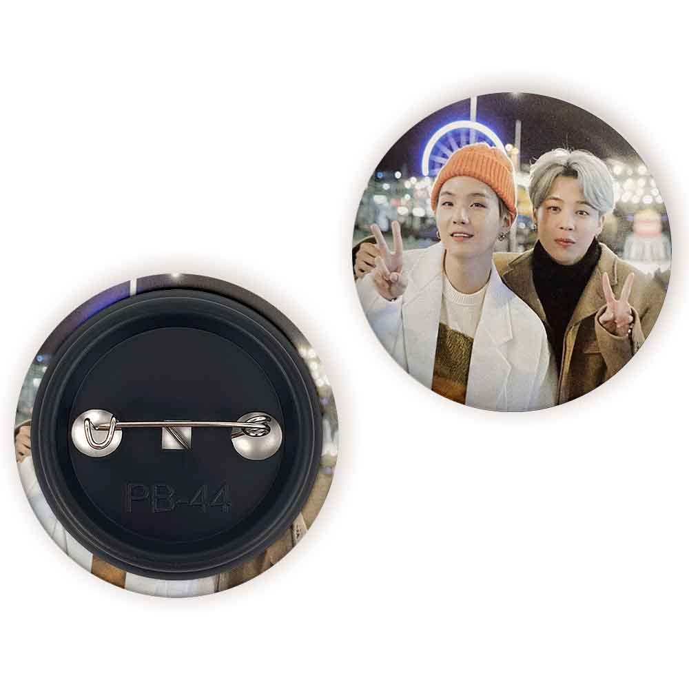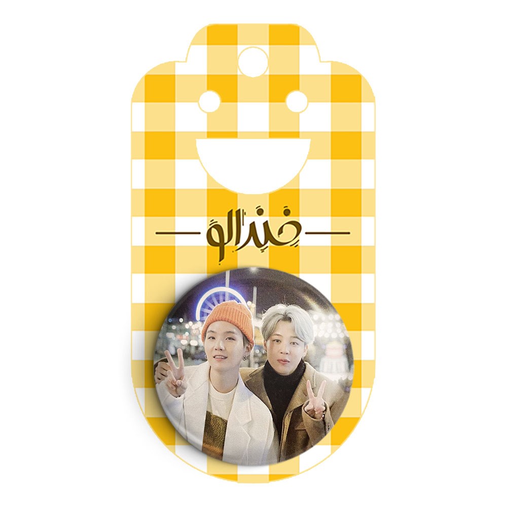 پیکسل 44 میلی متری گروه بی تی اس BTS خندالو با روکش سلفون حرارتی مات مخملی ضدخش و قطعه پشتی رنگی تولید شده است.پلاستیکی پشت پیکسل با سوزن یک تکه ثابت و بدون لغزش و جا به جایی، ایستایی بسیار بهتری نسبت به پشتی فلزی پیکسل دارند که این مهم در تولید این محصول نیز رعایت شده است.