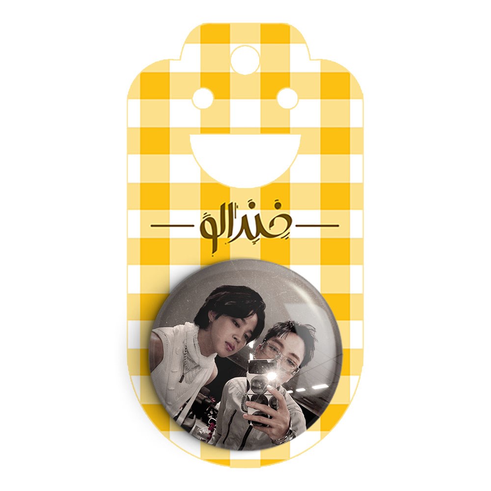 پیکسل 44 میلی متری گروه بی تی اس BTS خندالو با روکش سلفون حرارتی مات مخملی ضدخش و قطعه پشتی رنگی تولید شده است.پلاستیکی پشت پیکسل با سوزن یک تکه ثابت و بدون لغزش و جا به جایی، ایستایی بسیار بهتری نسبت به پشتی فلزی پیکسل دارند که این مهم در تولید این محصول نیز رعایت شده است.