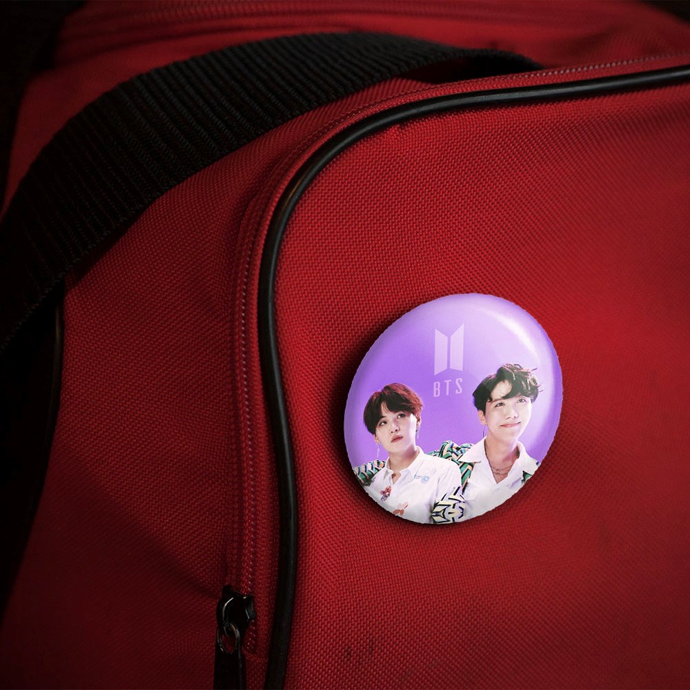 پیکسل 44 میلی متری گروه بی تی اس BTS خندالو با روکش سلفون حرارتی مات مخملی ضدخش و قطعه پشتی رنگی تولید شده است.پلاستیکی پشت پیکسل با سوزن یک تکه ثابت و بدون لغزش و جا به جایی، ایستایی بسیار بهتری نسبت به پشتی فلزی پیکسل دارند که این مهم در تولید این محصول نیز رعایت شده است.