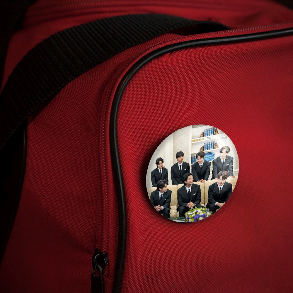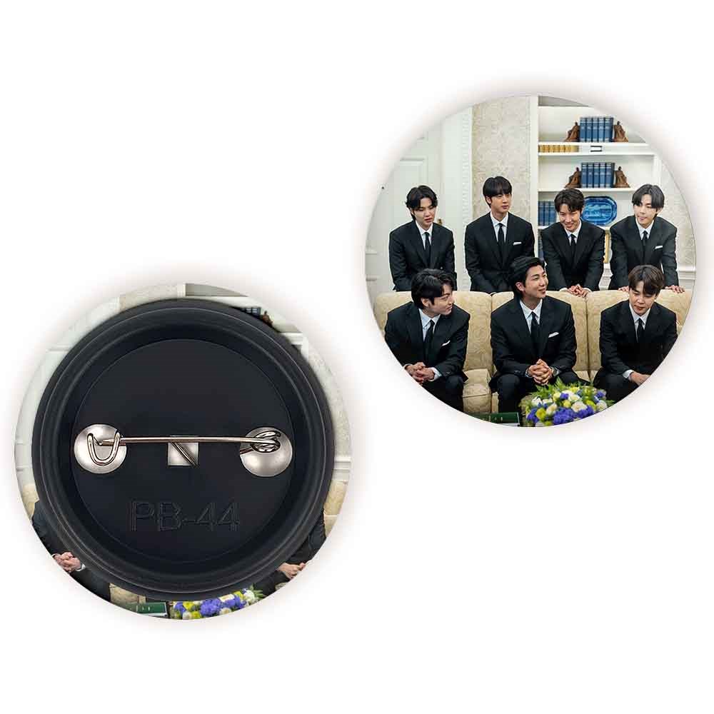 پیکسل 44 میلی متری گروه بی تی اس BTS خندالو با روکش سلفون حرارتی مات مخملی ضدخش و قطعه پشتی رنگی تولید شده است.پلاستیکی پشت پیکسل با سوزن یک تکه ثابت و بدون لغزش و جا به جایی، ایستایی بسیار بهتری نسبت به پشتی فلزی پیکسل دارند که این مهم در تولید این محصول نیز رعایت شده است.