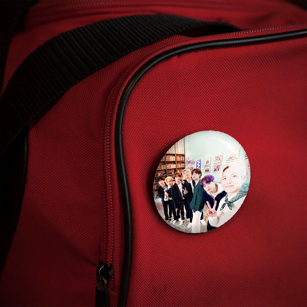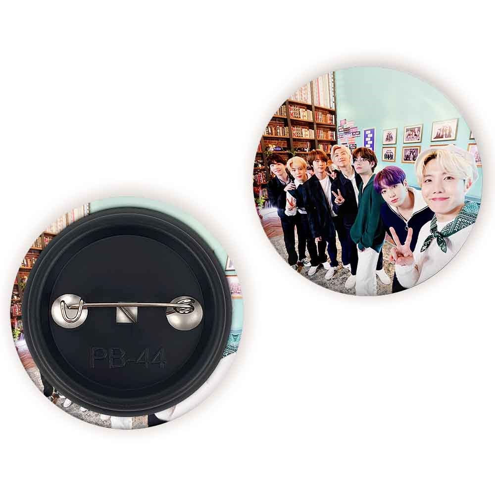 پیکسل 44 میلی متری گروه بی تی اس BTS خندالو با روکش سلفون حرارتی مات مخملی ضدخش و قطعه پشتی رنگی تولید شده است.پلاستیکی پشت پیکسل با سوزن یک تکه ثابت و بدون لغزش و جا به جایی، ایستایی بسیار بهتری نسبت به پشتی فلزی پیکسل دارند که این مهم در تولید این محصول نیز رعایت شده است.
