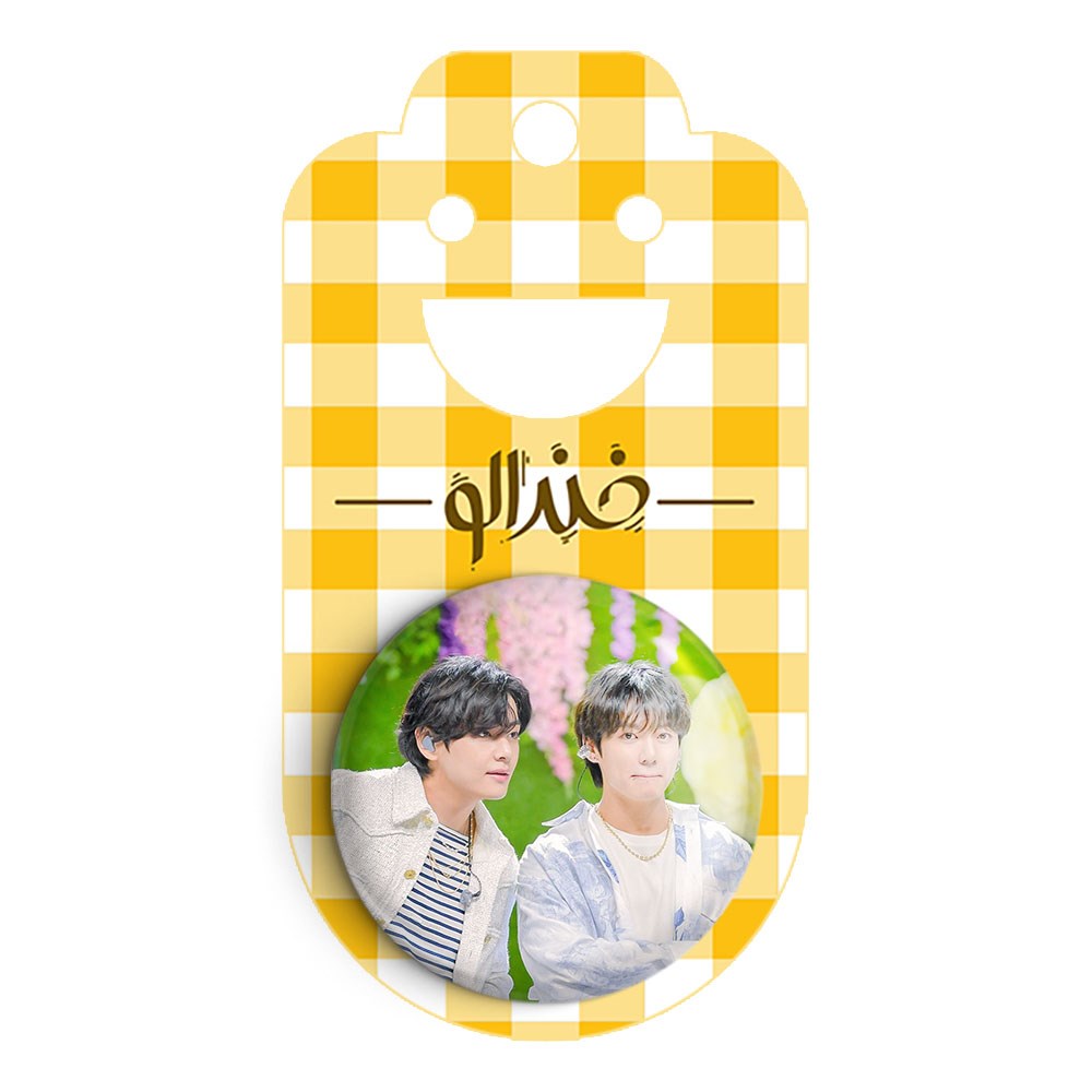 پیکسل 44 میلی متری گروه بی تی اس BTS خندالو با روکش سلفون حرارتی مات مخملی ضدخش و قطعه پشتی رنگی تولید شده است.پلاستیکی پشت پیکسل با سوزن یک تکه ثابت و بدون لغزش و جا به جایی، ایستایی بسیار بهتری نسبت به پشتی فلزی پیکسل دارند که این مهم در تولید این محصول نیز رعایت شده است.