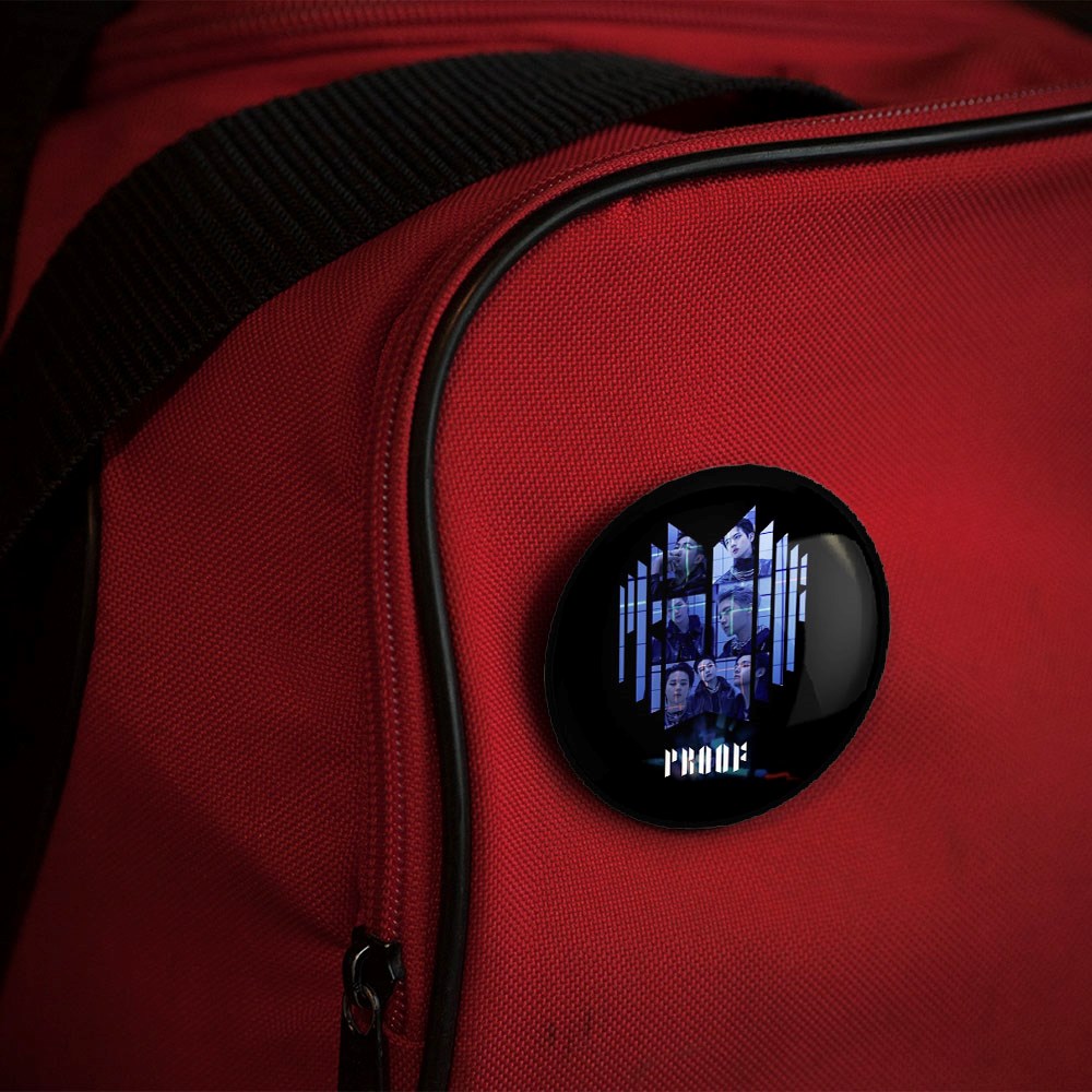 پیکسل 44 میلی متری گروه بی تی اس BTS خندالو با روکش سلفون حرارتی مات مخملی ضدخش و قطعه پشتی رنگی تولید شده است.پلاستیکی پشت پیکسل با سوزن یک تکه ثابت و بدون لغزش و جا به جایی، ایستایی بسیار بهتری نسبت به پشتی فلزی پیکسل دارند که این مهم در تولید این محصول نیز رعایت شده است.