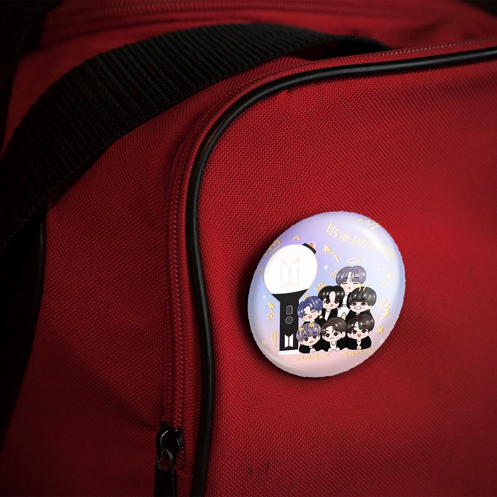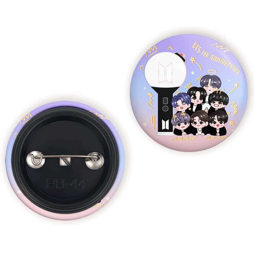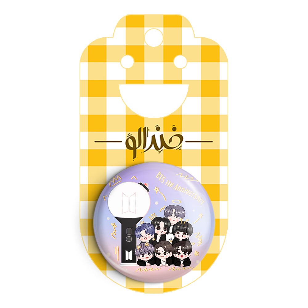 پیکسل 44 میلی متری گروه بی تی اس BTS خندالو با روکش سلفون حرارتی مات مخملی ضدخش و قطعه پشتی رنگی تولید شده است.پلاستیکی پشت پیکسل با سوزن یک تکه ثابت و بدون لغزش و جا به جایی، ایستایی بسیار بهتری نسبت به پشتی فلزی پیکسل دارند که این مهم در تولید این محصول نیز رعایت شده است.