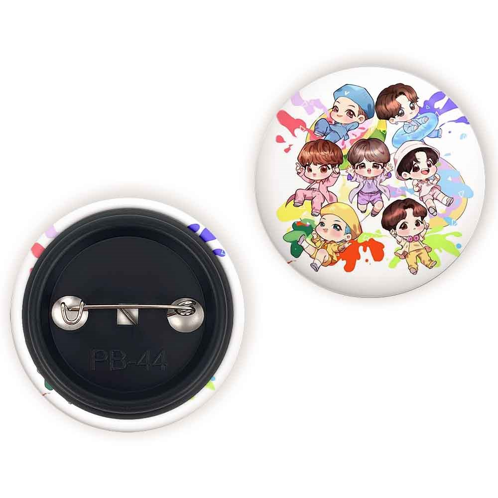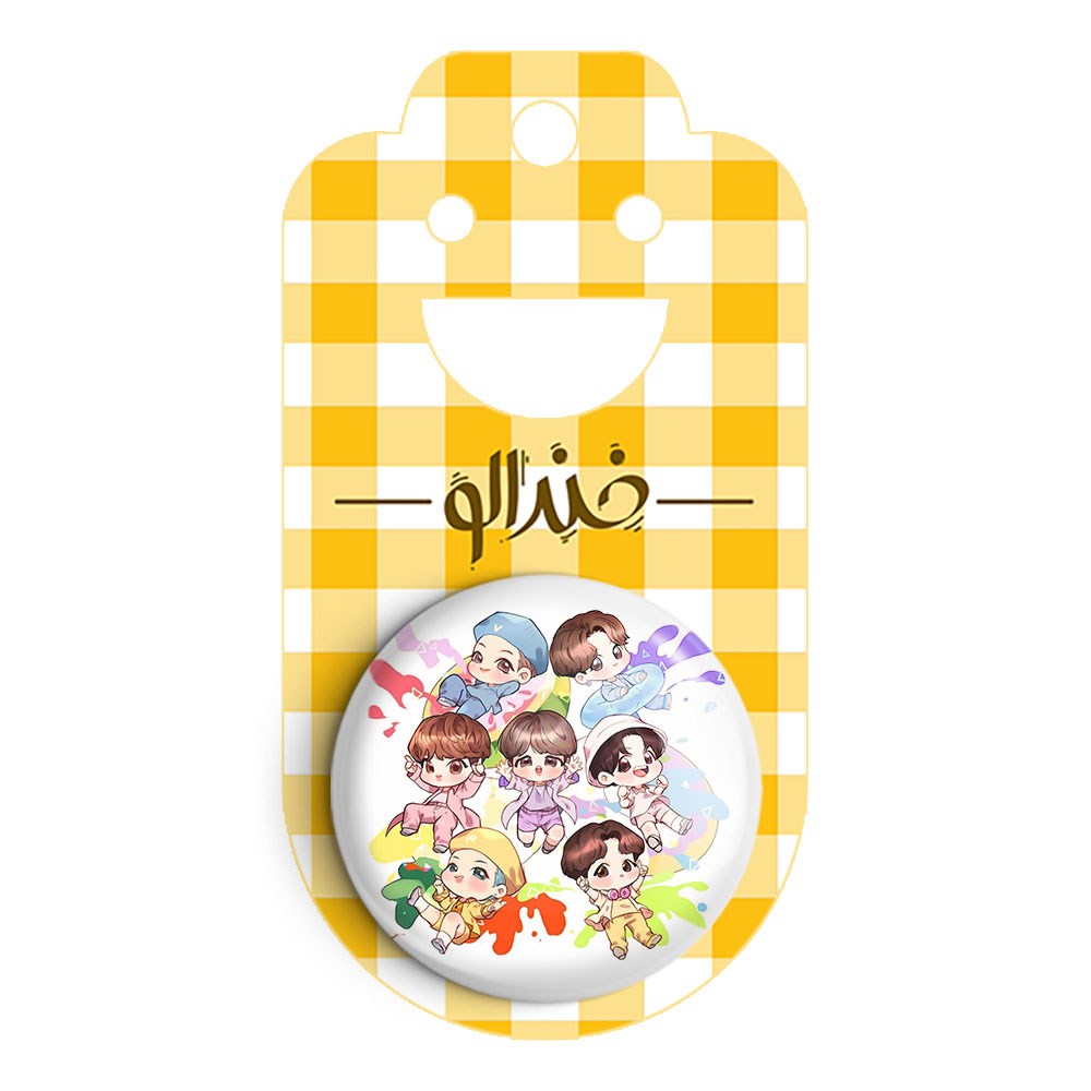 پیکسل 44 میلی متری گروه بی تی اس BTS خندالو با روکش سلفون حرارتی مات مخملی ضدخش و قطعه پشتی رنگی تولید شده است.پلاستیکی پشت پیکسل با سوزن یک تکه ثابت و بدون لغزش و جا به جایی، ایستایی بسیار بهتری نسبت به پشتی فلزی پیکسل دارند که این مهم در تولید این محصول نیز رعایت شده است.