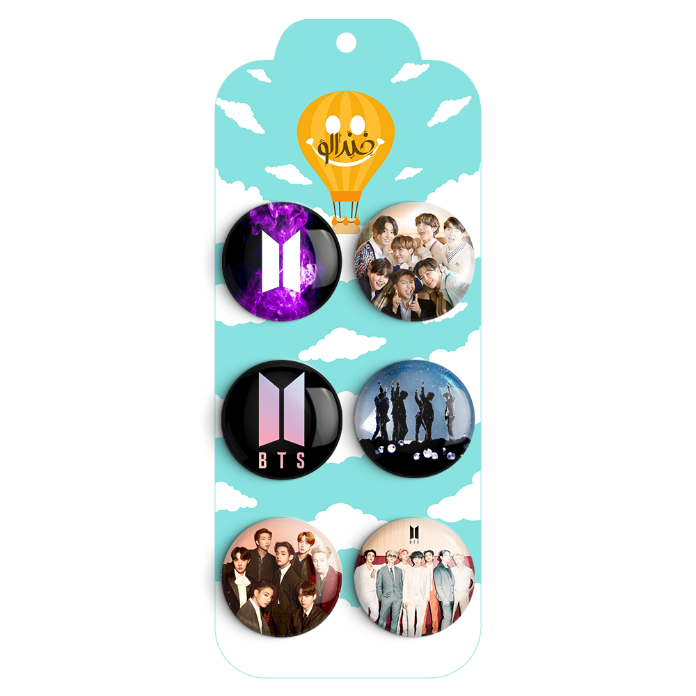 مجموعه 6 عددی پیکسل خندالو طرح گروه بی تی اس (BTS) با روکش سلفون حرارتی براق ضدخش و قطعه پشتی رنگی تولید شده است. قطعات پشتی از میان 6 رنگ سفید، مشکی، صورتی، زرد، آبی و قرمز که با توجه به نوع و رنگبندی طرح روی پیکسل انتخاب شده اند تولید می شود و در هر بسته بندی مطابق عکس محصول می باشد. قطعات پلاستیکی پشت پیکسل با سوزن یک تکه ثابت و بدون لغزش و جا به جایی، ایستایی بسیار بهتری نسبت به پشتی فلزی پیکسل دارند که این مهم در تولید این محصول نیز رعایت شده است. چاپ پیکسل نیز با دستگاه های استاندارد و با بهترین سطح کیفی صورت گرفته و طرح با شفافیتی مثال زدنی و با سلفونی بدون شکست نور بر روی پیکسل نقش بسته است. همچنین بسته بندی جذاب و مینیمال پیکسل ها، آنها را مناسب هدیه کرده است..