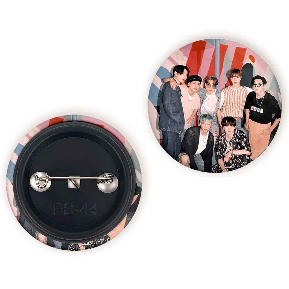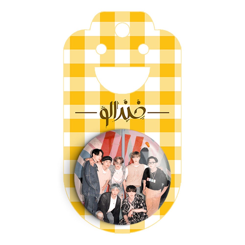 پیکسل 44 میلی متری گروه بی تی اس BTS خندالو با روکش سلفون حرارتی مات مخملی ضدخش و قطعه پشتی رنگی تولید شده است.پلاستیکی پشت پیکسل با سوزن یک تکه ثابت و بدون لغزش و جا به جایی، ایستایی بسیار بهتری نسبت به پشتی فلزی پیکسل دارند که این مهم در تولید این محصول نیز رعایت شده است.