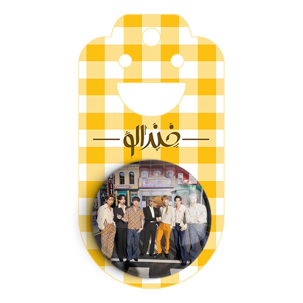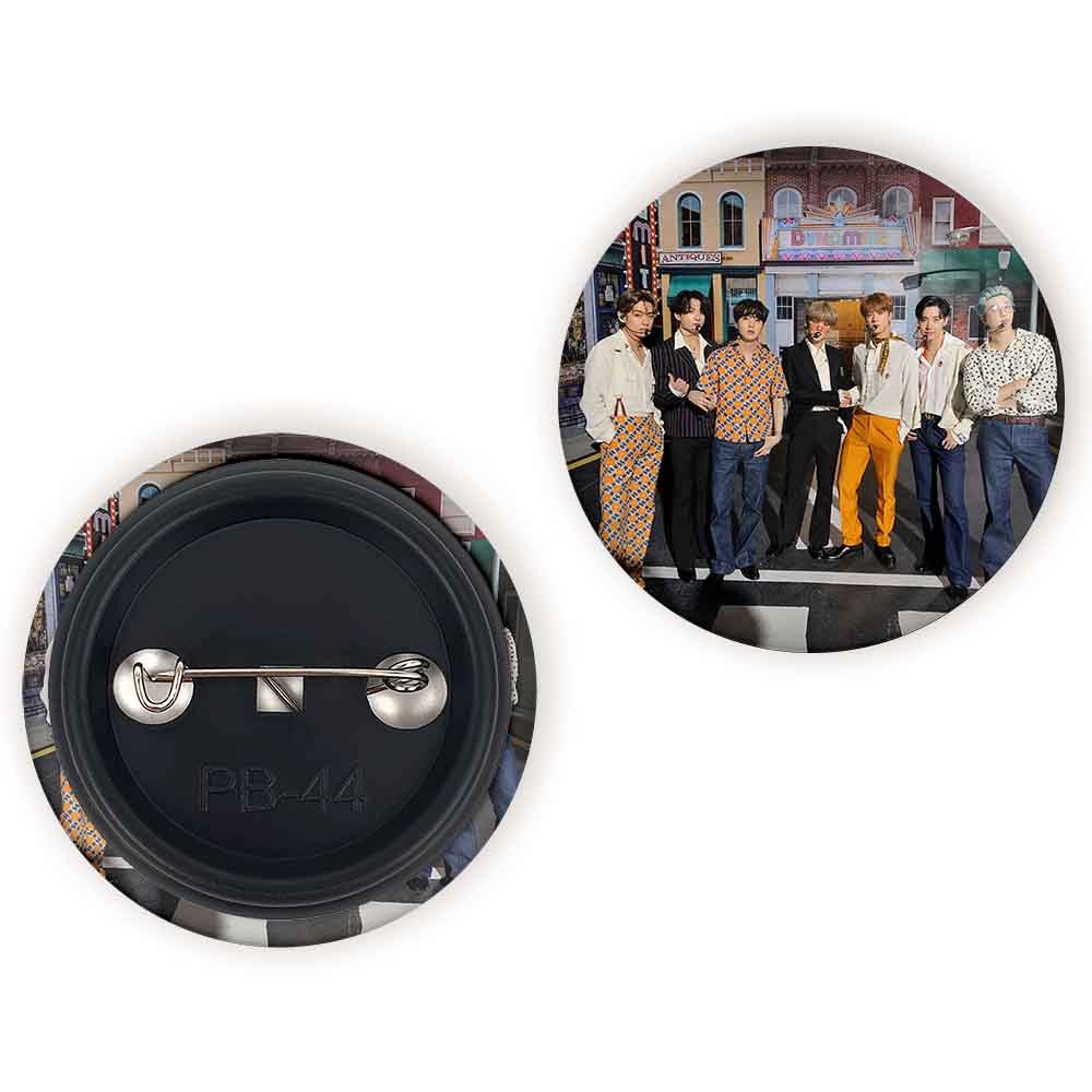 پیکسل 44 میلی متری گروه بی تی اس BTS خندالو با روکش سلفون حرارتی مات مخملی ضدخش و قطعه پشتی رنگی تولید شده است.پلاستیکی پشت پیکسل با سوزن یک تکه ثابت و بدون لغزش و جا به جایی، ایستایی بسیار بهتری نسبت به پشتی فلزی پیکسل دارند که این مهم در تولید این محصول نیز رعایت شده است.
