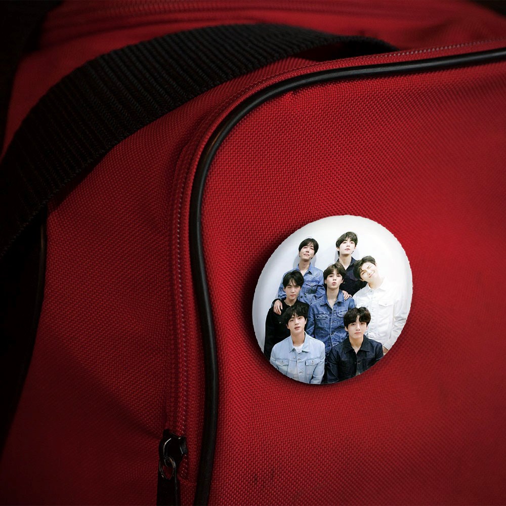 پیکسل 44 میلی متری گروه بی تی اس BTS خندالو با روکش سلفون حرارتی مات مخملی ضدخش و قطعه پشتی رنگی تولید شده است.پلاستیکی پشت پیکسل با سوزن یک تکه ثابت و بدون لغزش و جا به جایی، ایستایی بسیار بهتری نسبت به پشتی فلزی پیکسل دارند که این مهم در تولید این محصول نیز رعایت شده است.