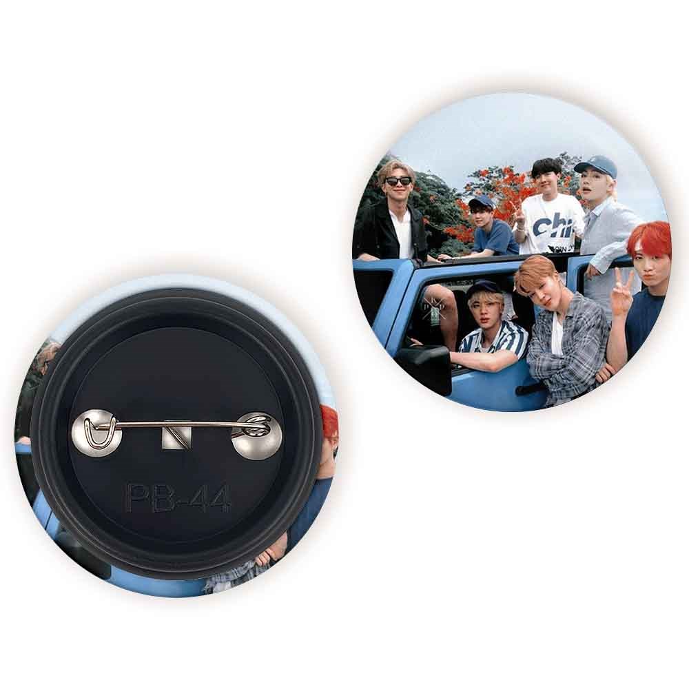 پیکسل 44 میلی متری گروه بی تی اس BTS خندالو با روکش سلفون حرارتی مات مخملی ضدخش و قطعه پشتی رنگی تولید شده است.پلاستیکی پشت پیکسل با سوزن یک تکه ثابت و بدون لغزش و جا به جایی، ایستایی بسیار بهتری نسبت به پشتی فلزی پیکسل دارند که این مهم در تولید این محصول نیز رعایت شده است.