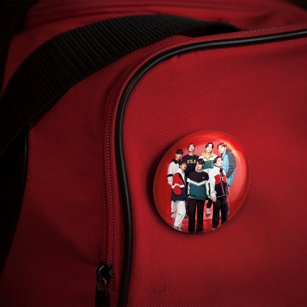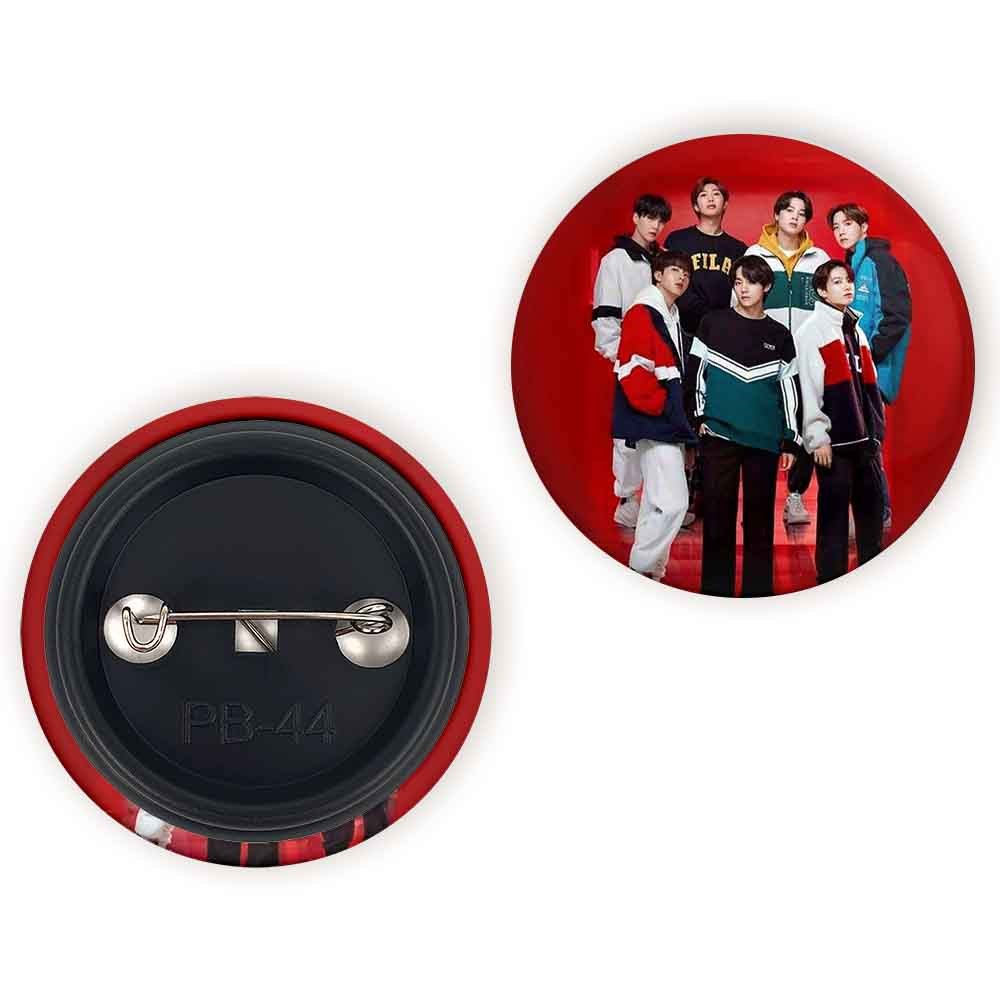 پیکسل 44 میلی متری گروه بی تی اس BTS خندالو با روکش سلفون حرارتی مات مخملی ضدخش و قطعه پشتی رنگی تولید شده است.پلاستیکی پشت پیکسل با سوزن یک تکه ثابت و بدون لغزش و جا به جایی، ایستایی بسیار بهتری نسبت به پشتی فلزی پیکسل دارند که این مهم در تولید این محصول نیز رعایت شده است.