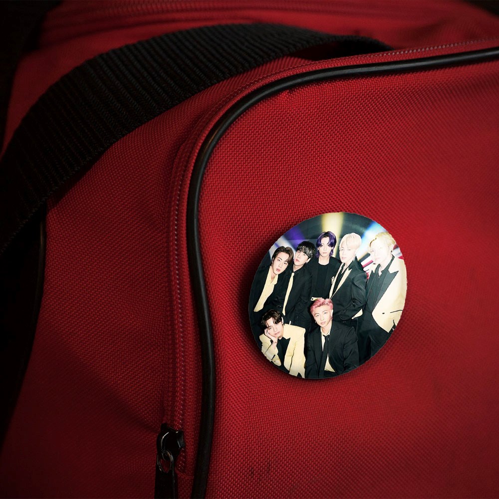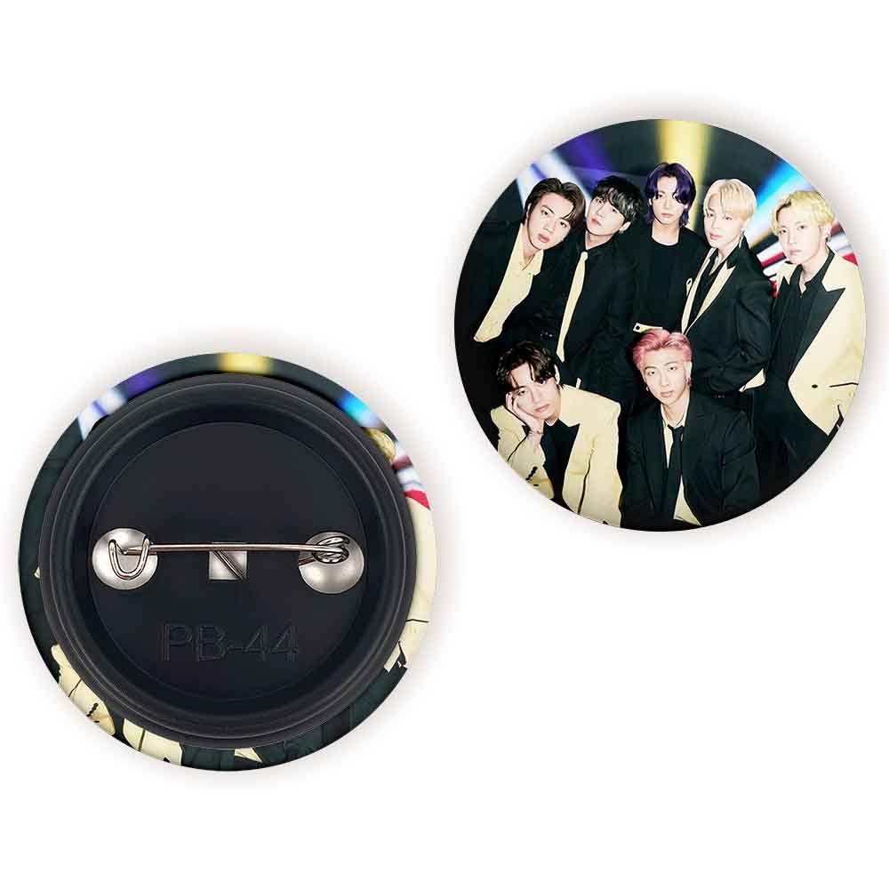 پیکسل 44 میلی متری گروه بی تی اس BTS خندالو با روکش سلفون حرارتی مات مخملی ضدخش و قطعه پشتی رنگی تولید شده است.پلاستیکی پشت پیکسل با سوزن یک تکه ثابت و بدون لغزش و جا به جایی، ایستایی بسیار بهتری نسبت به پشتی فلزی پیکسل دارند که این مهم در تولید این محصول نیز رعایت شده است.